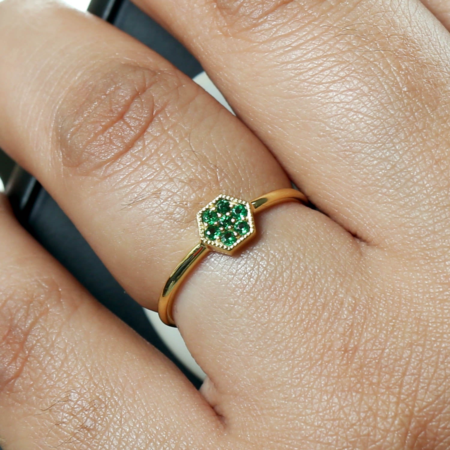 10K Yellow Gold Prong Tsavorite Gemstone Designer Band Ring