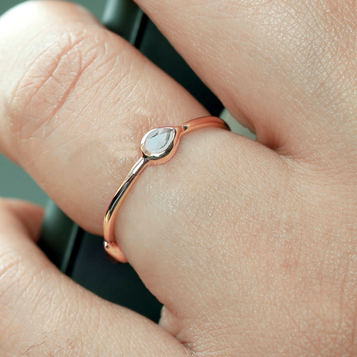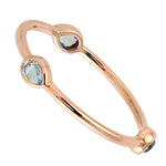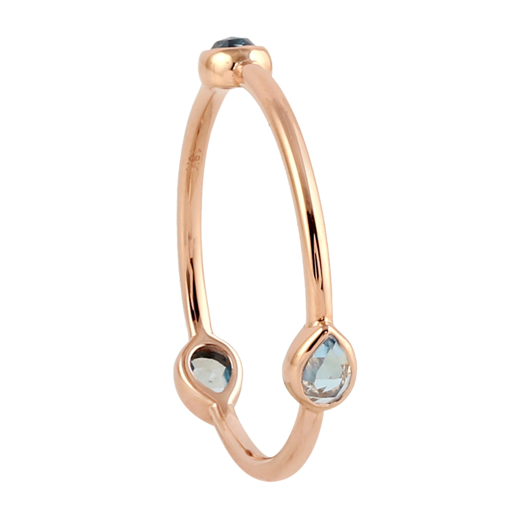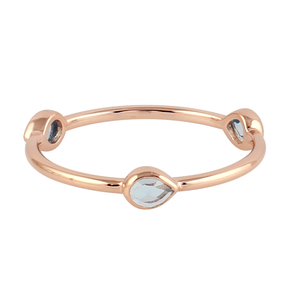 18K Rose Gold Bezel Blue Topaz November Birthstone Three Stone Band Ring For Her