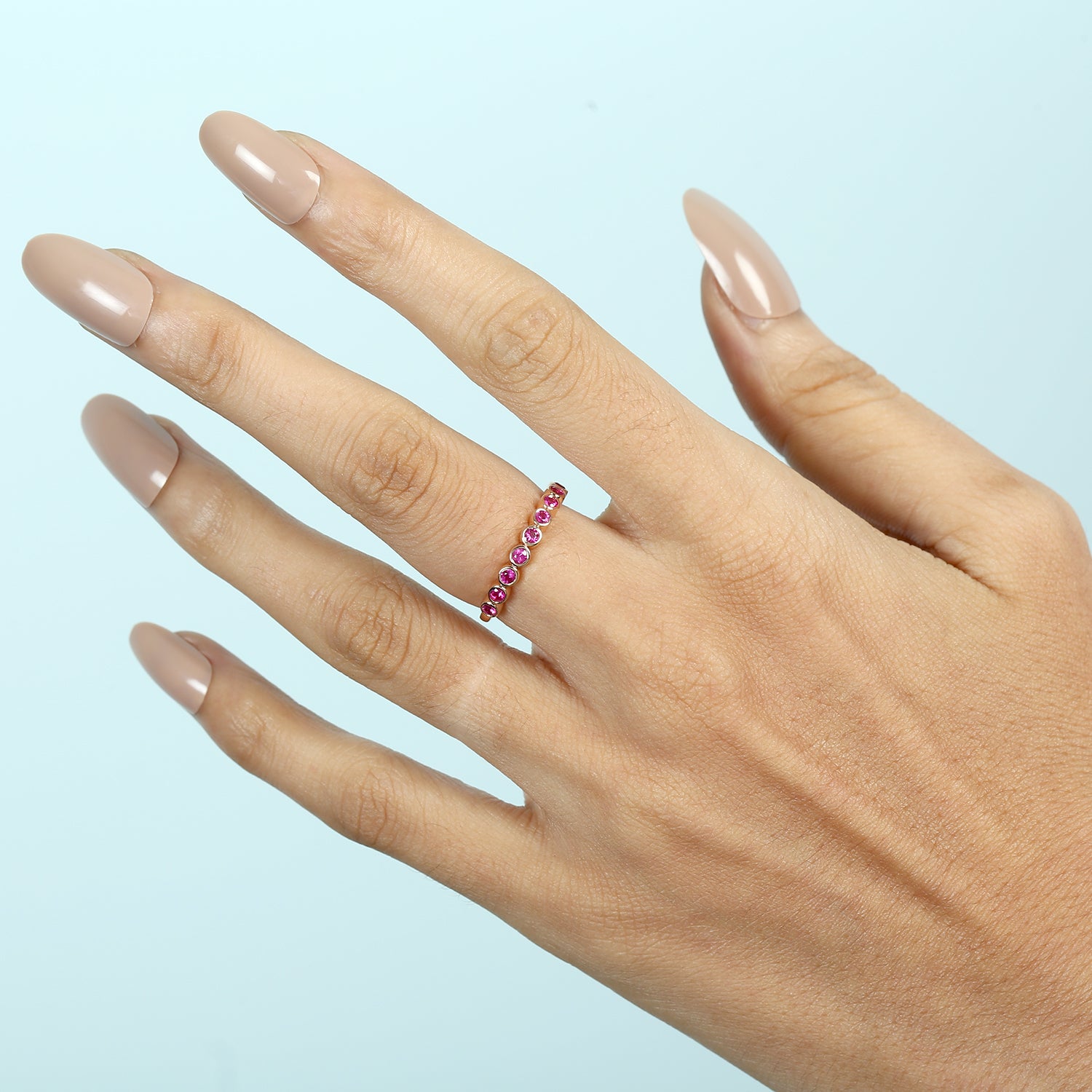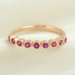 18K Rose Gold Bezel Ruby Precious Gemstone Band Ring Jewelry