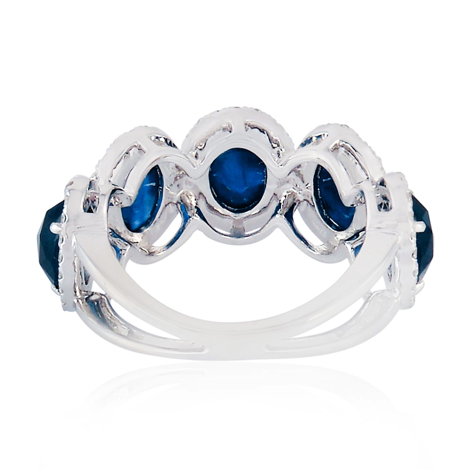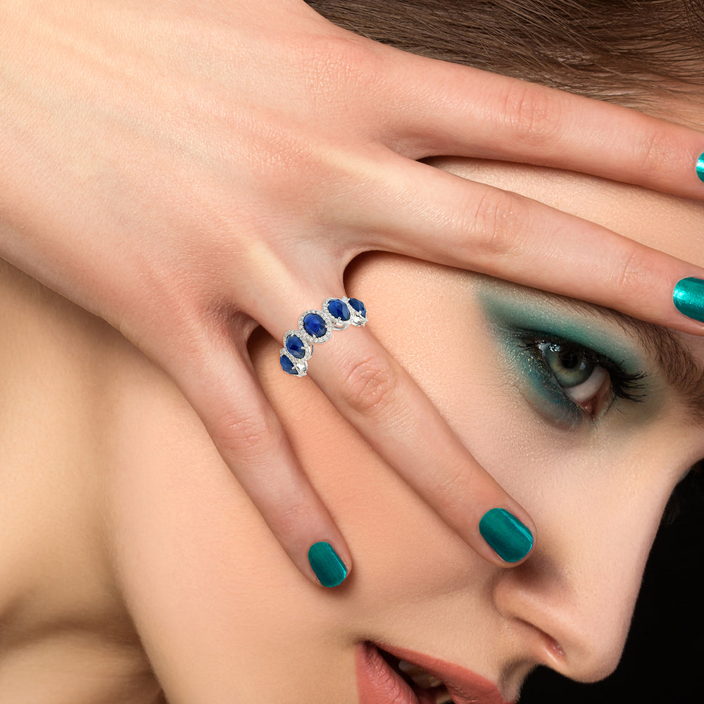 18K White Gold Oval Blue Sapphire & Diamond Halo Band Ring