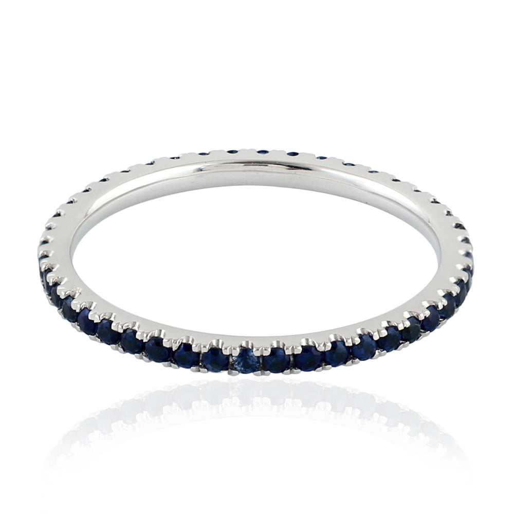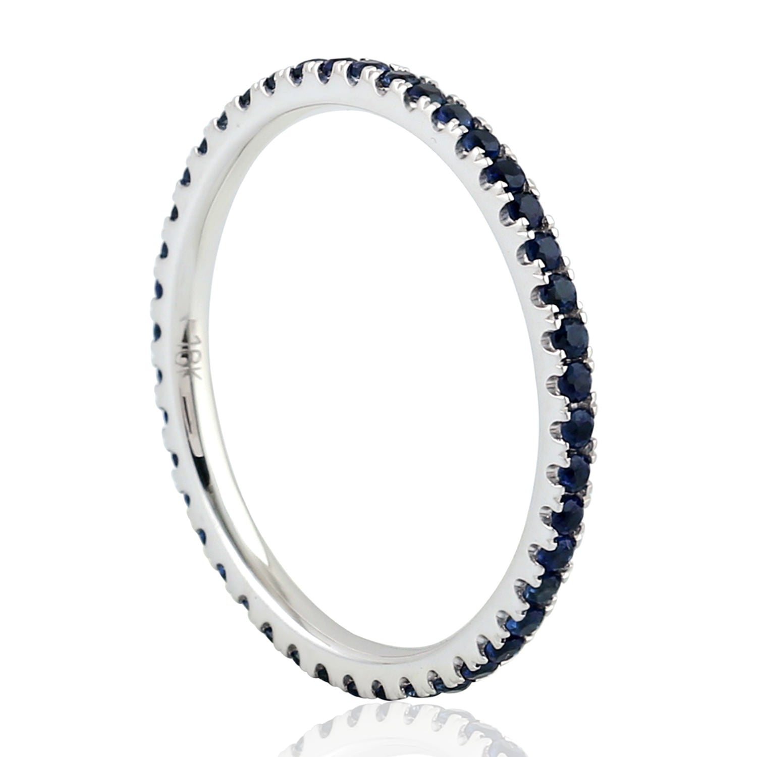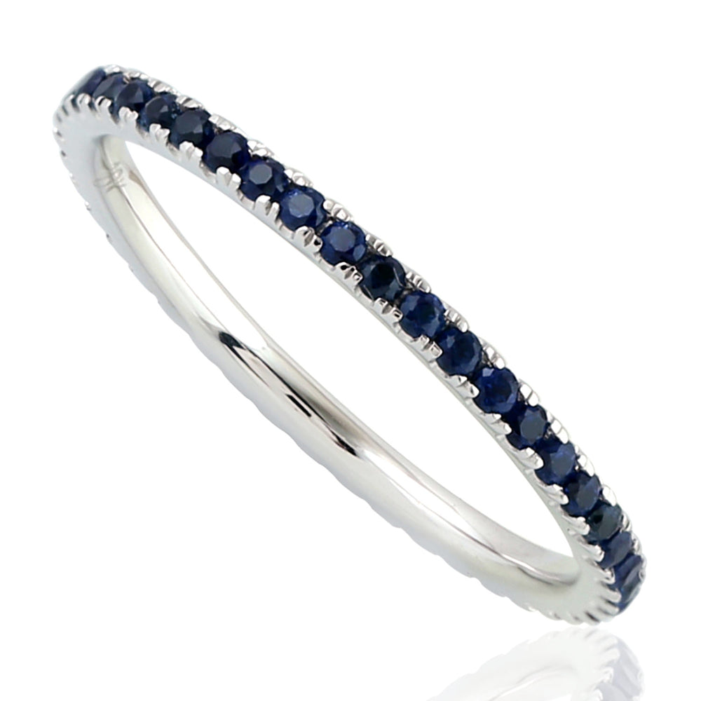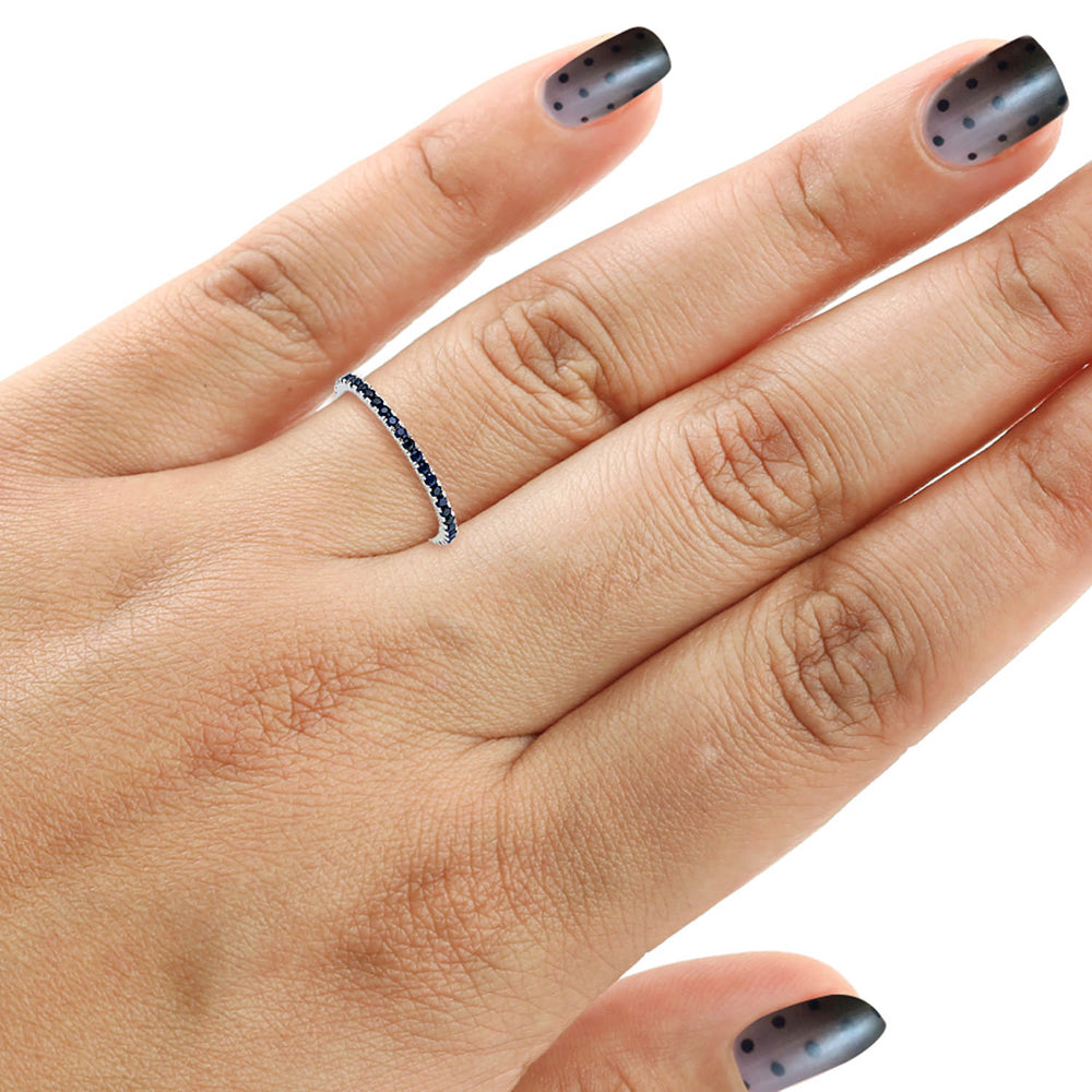 18K White Gold Pave Blue Sapphire Full Eternity Band Ring For Women's