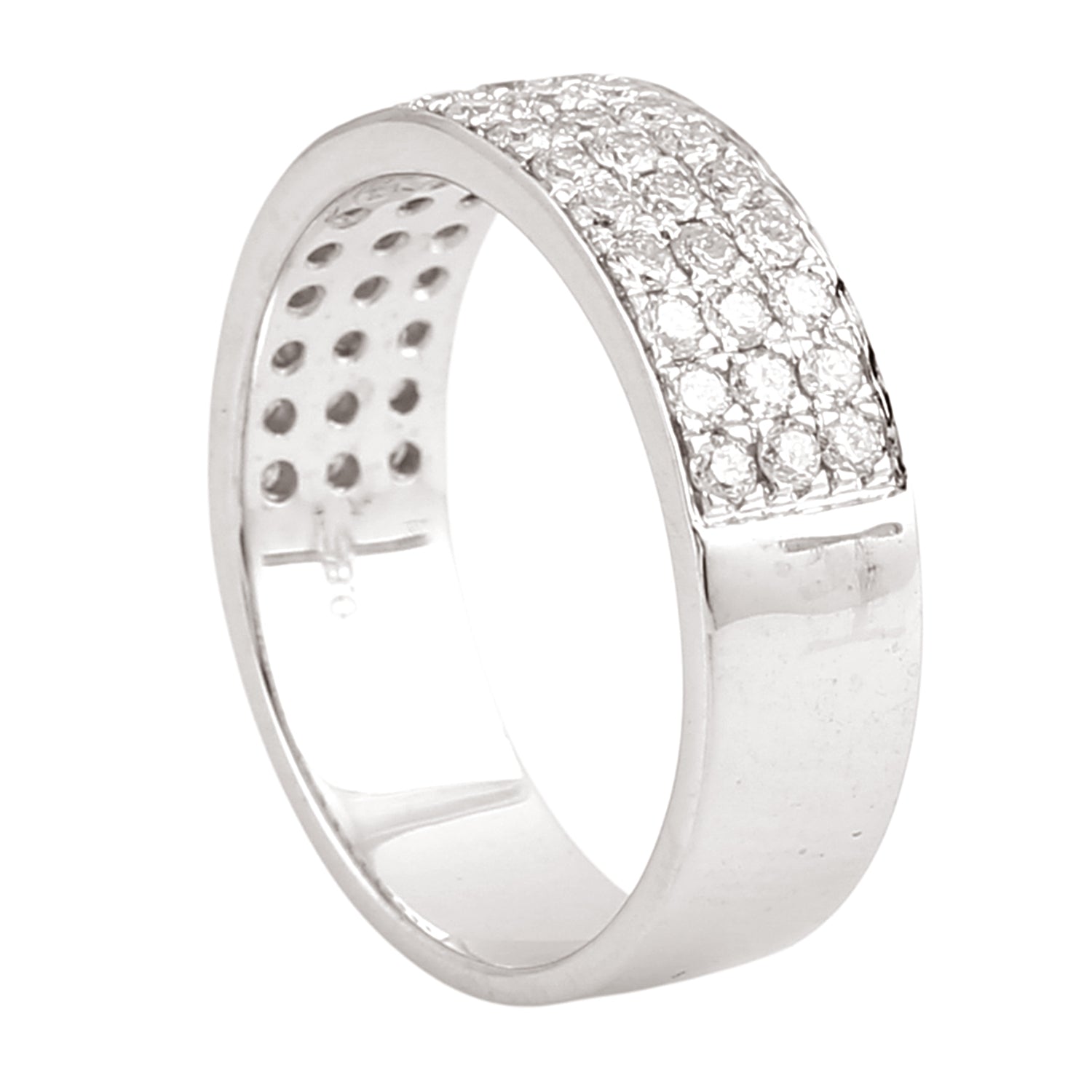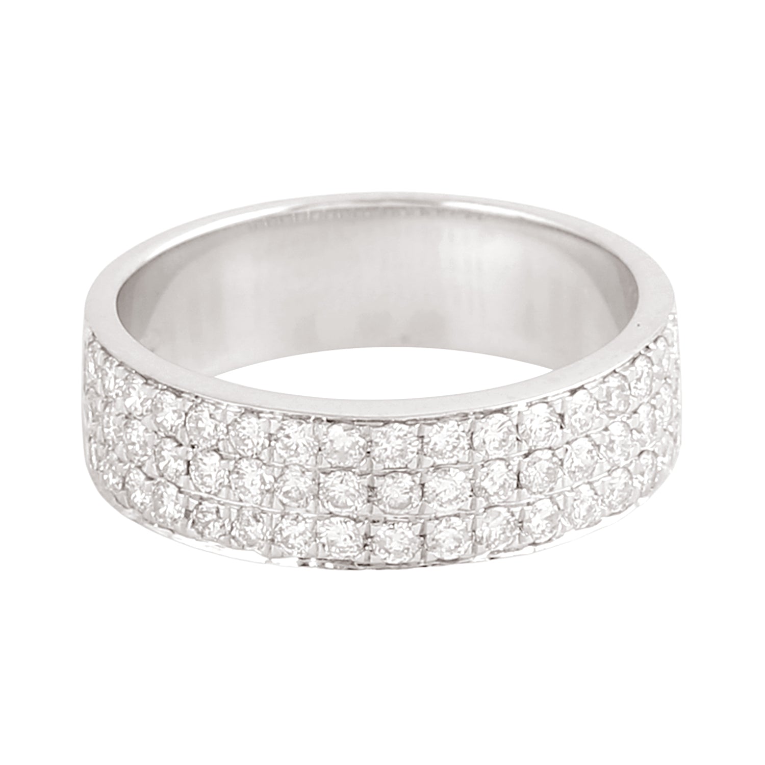 18K White Gold Triple Row Pavé Diamond Band Ring