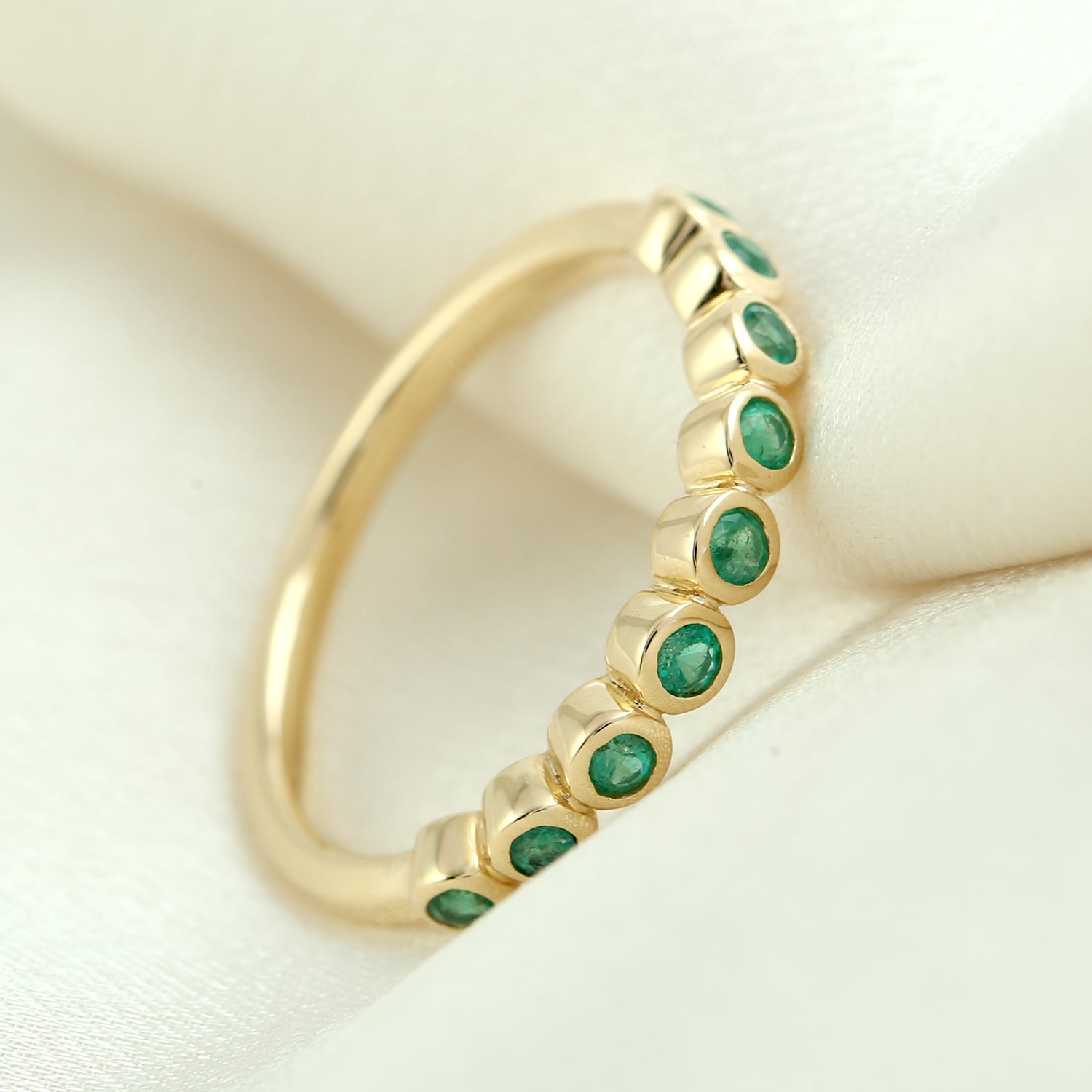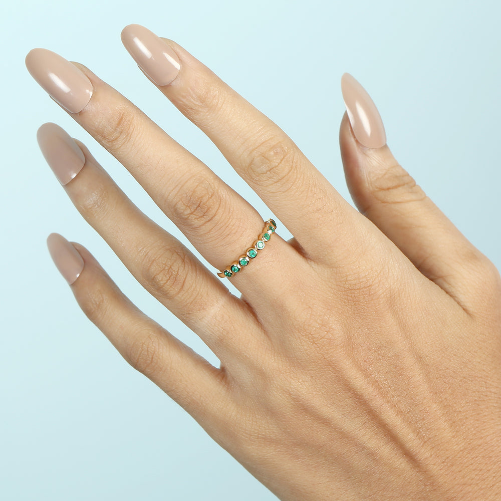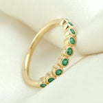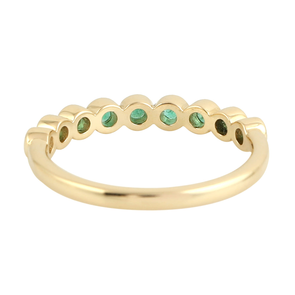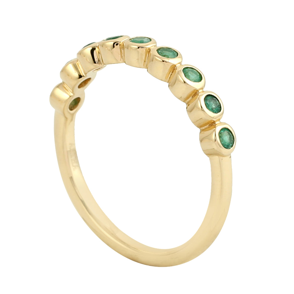 18K Yellow Gold Bezel Emerald Gemstone Band Ring For Gifts