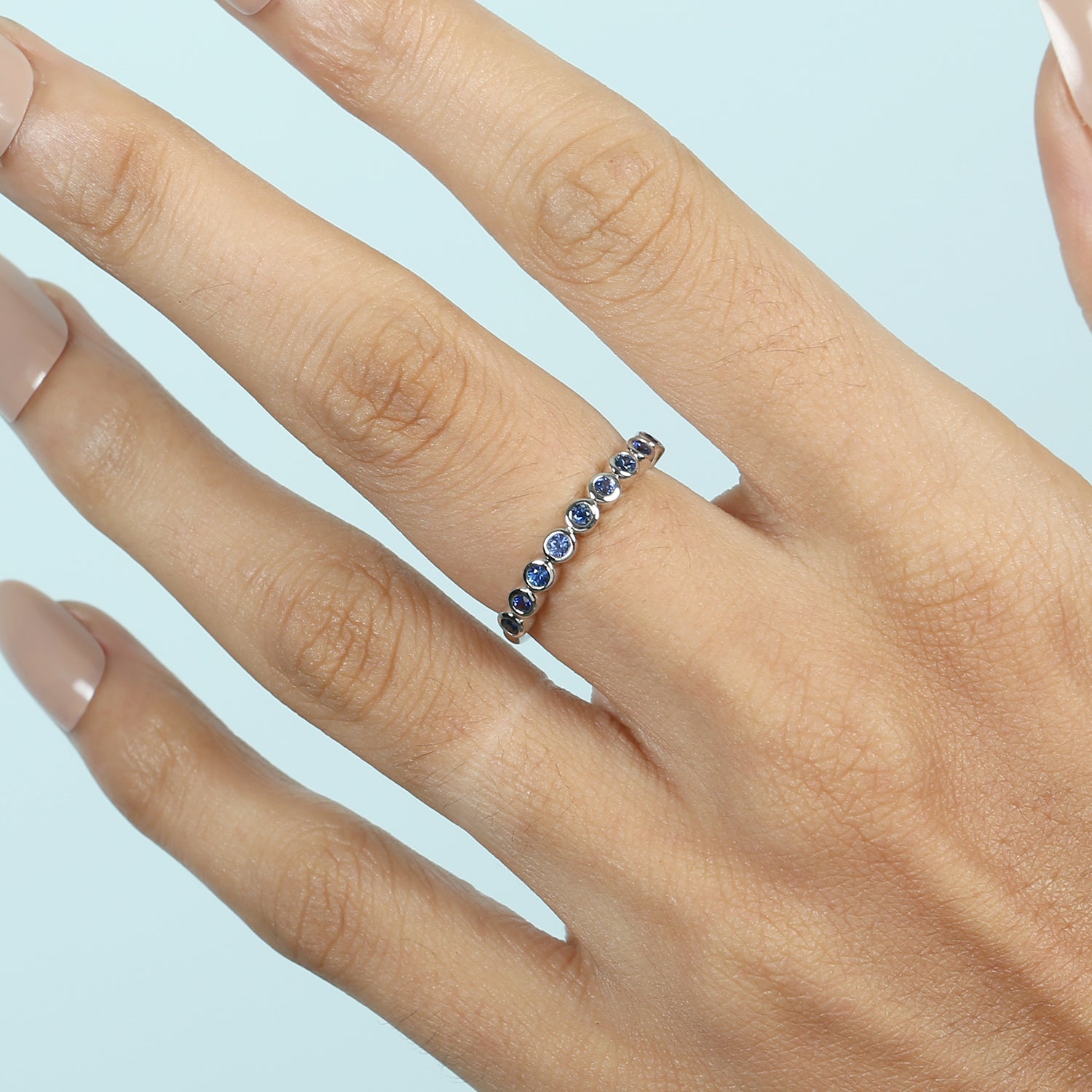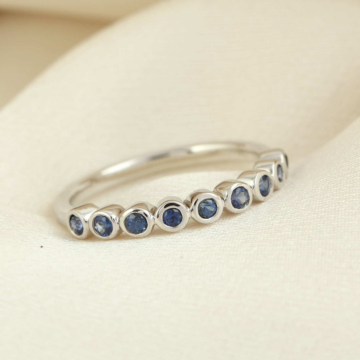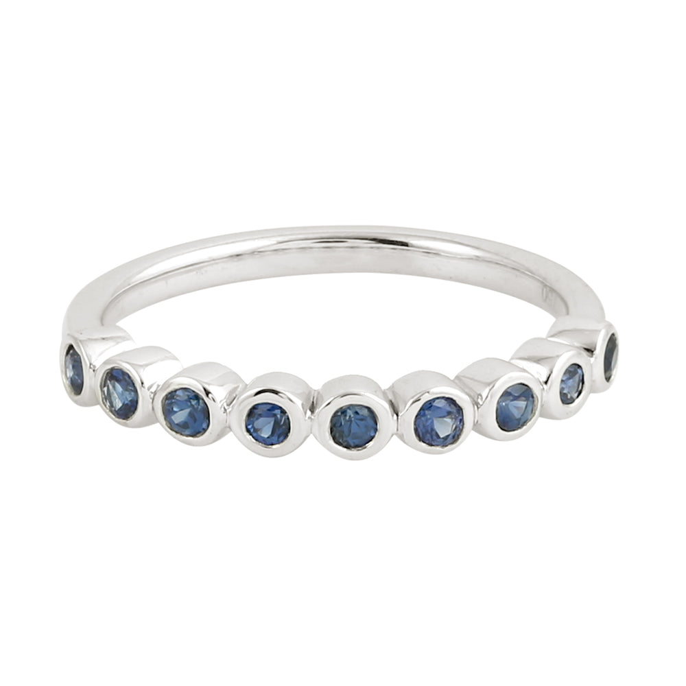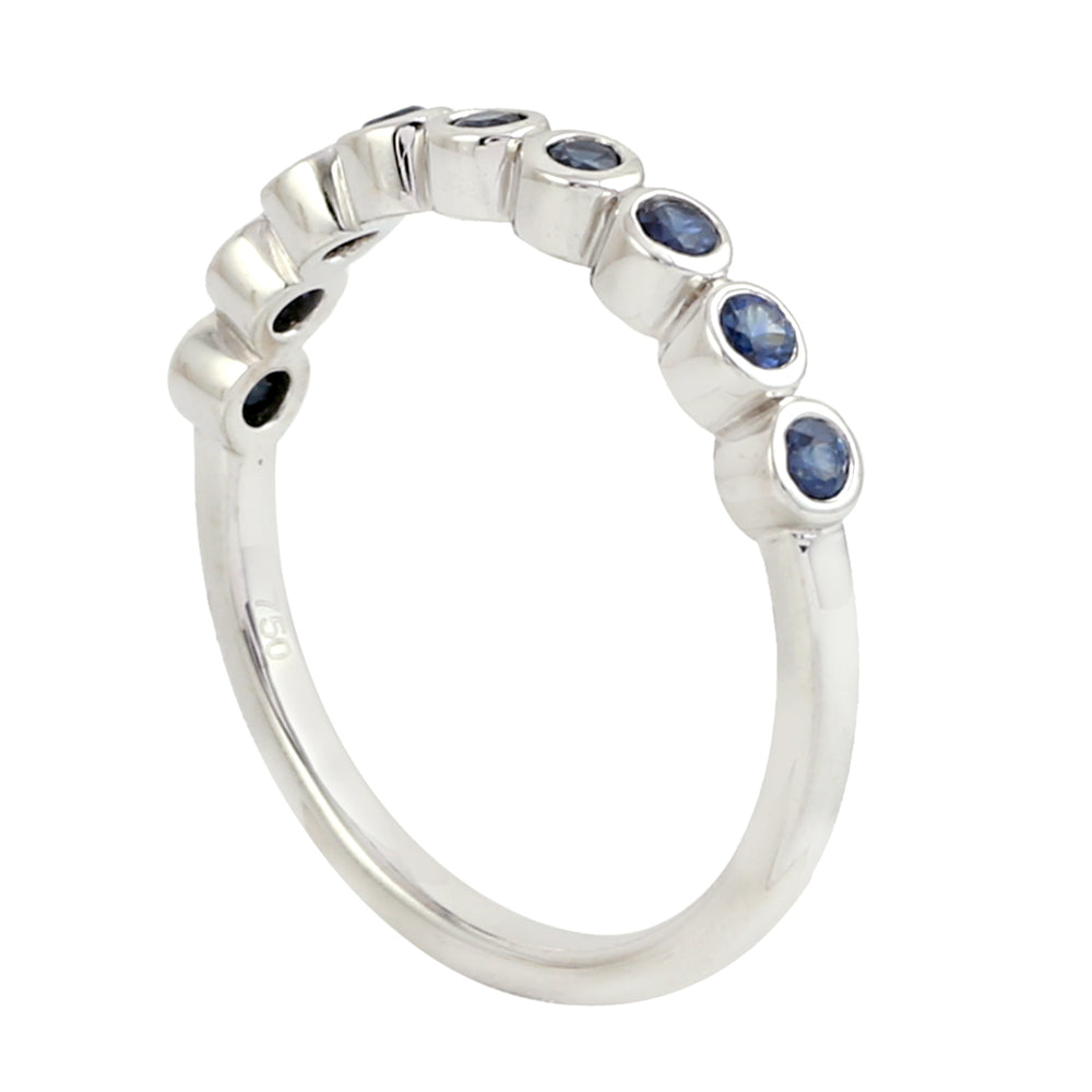 Bezel Blue Sapphire Gemstone In 18K White Gold Band Ring For Women