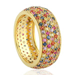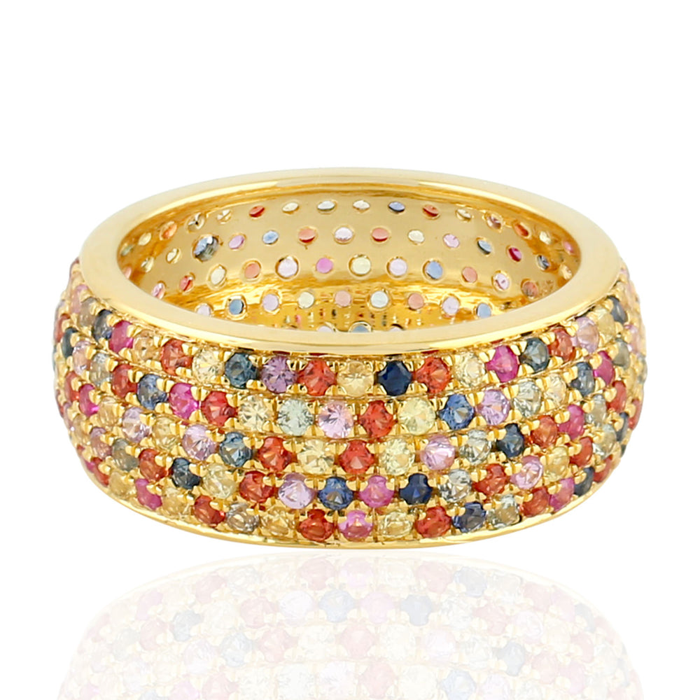 Multi Sapphire Gemstone Wide Designer Band Ring In 18K Yellow Gold