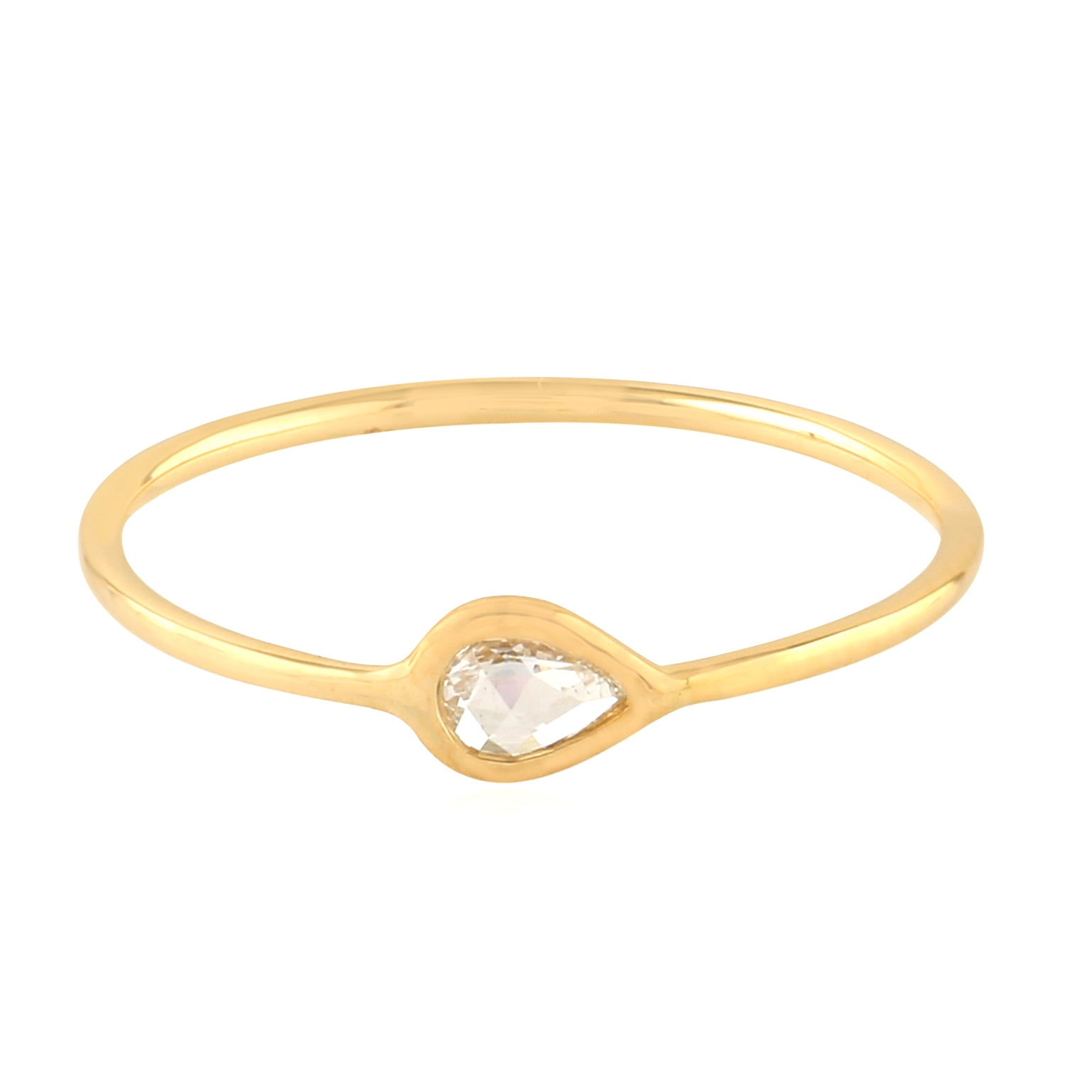 Natural Rose Cut Diamond In 18K Yellow Gold Band Ring For Her