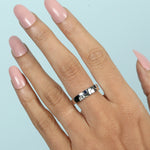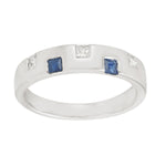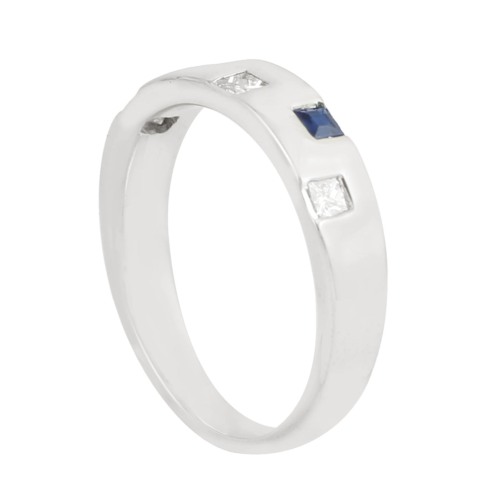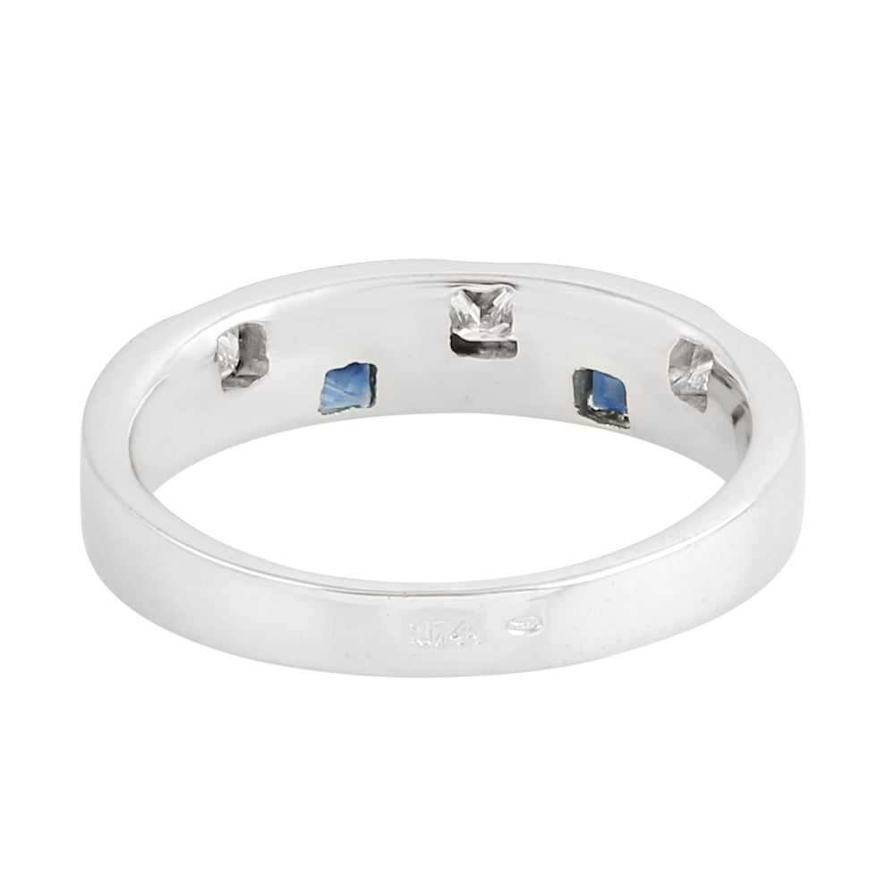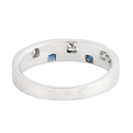 Square Cut Blue Sapphire Diamond Band Ring In 18K White Gold