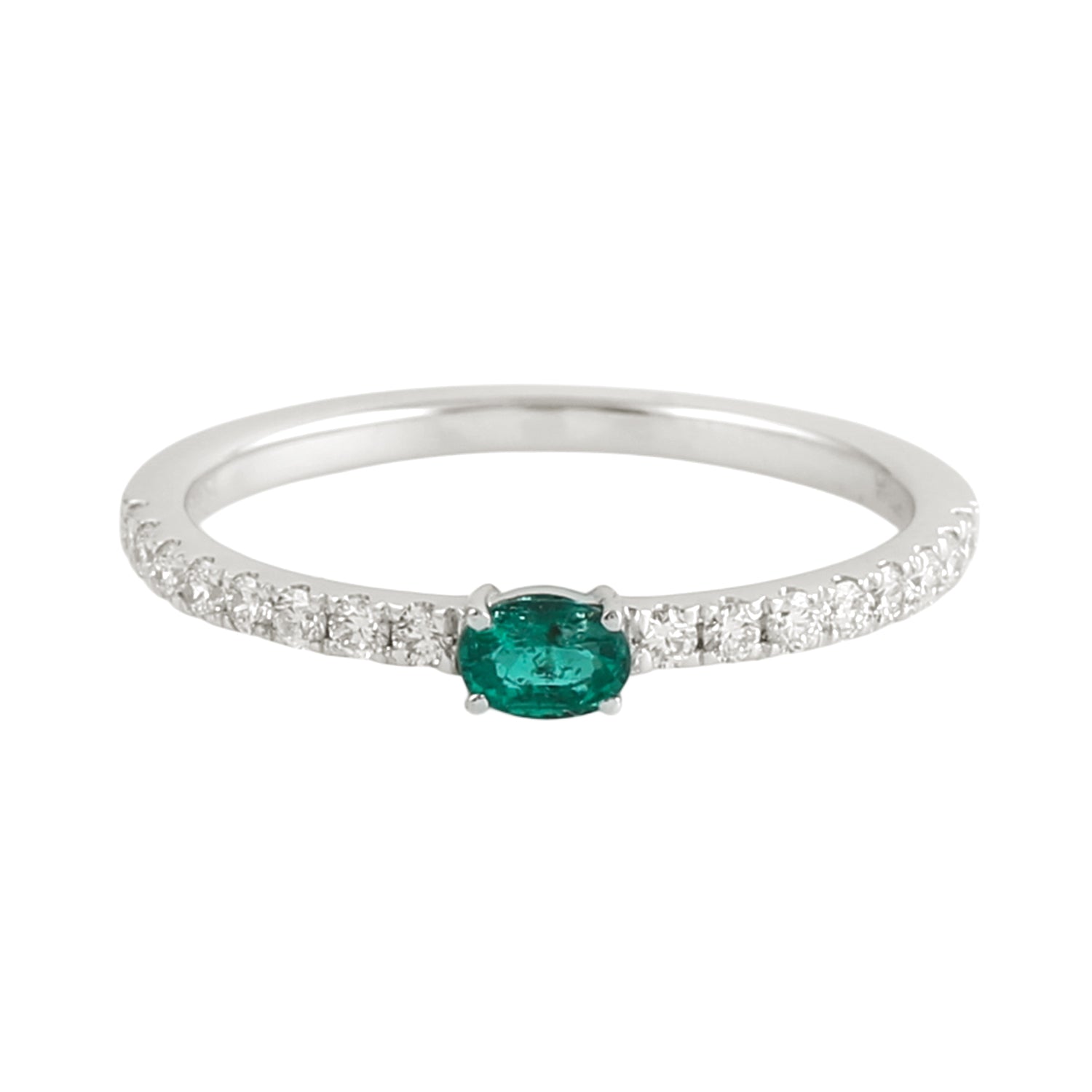 • Oval Cut Emerald Pave Diamond Minimal Band Ring in 18K White Gold