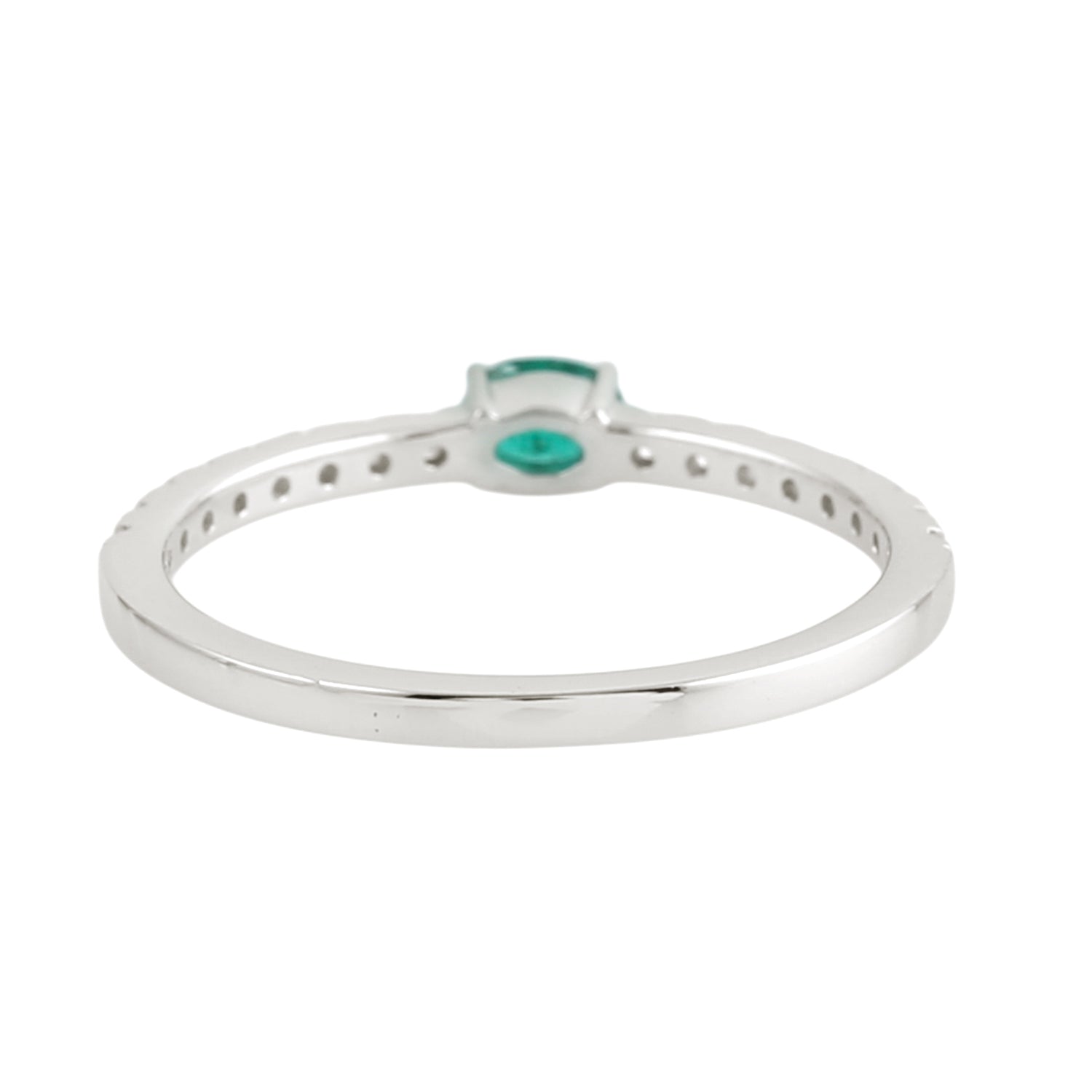 Oval Cut Emerald Pave Diamond Minimal Band Ring in 18K White Gold