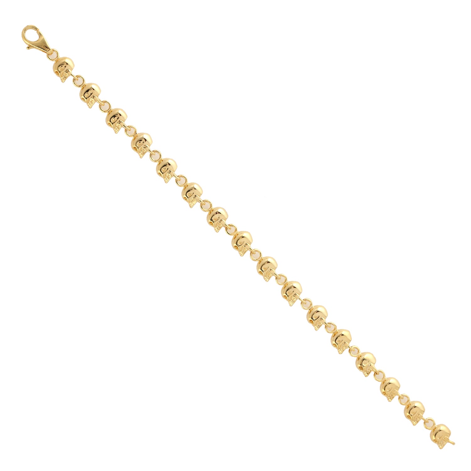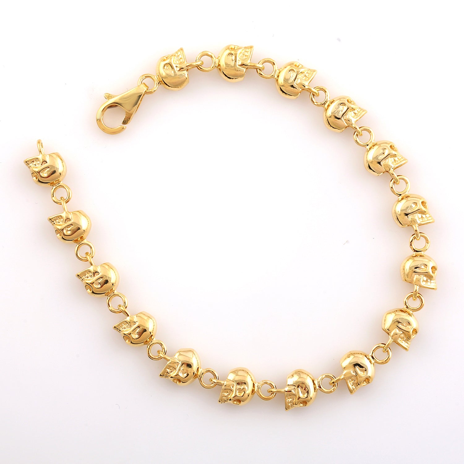 14k Yellow Gold Skull Linking Bracelet Halloween Jewelry