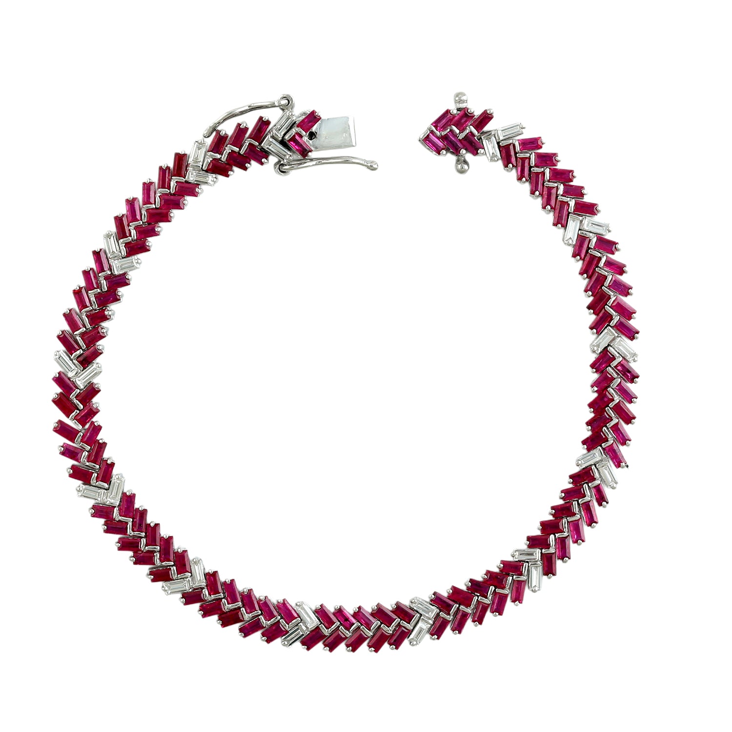 • Baguette Ruby and Diamond Tennis Bracelet in 10K White Gold
