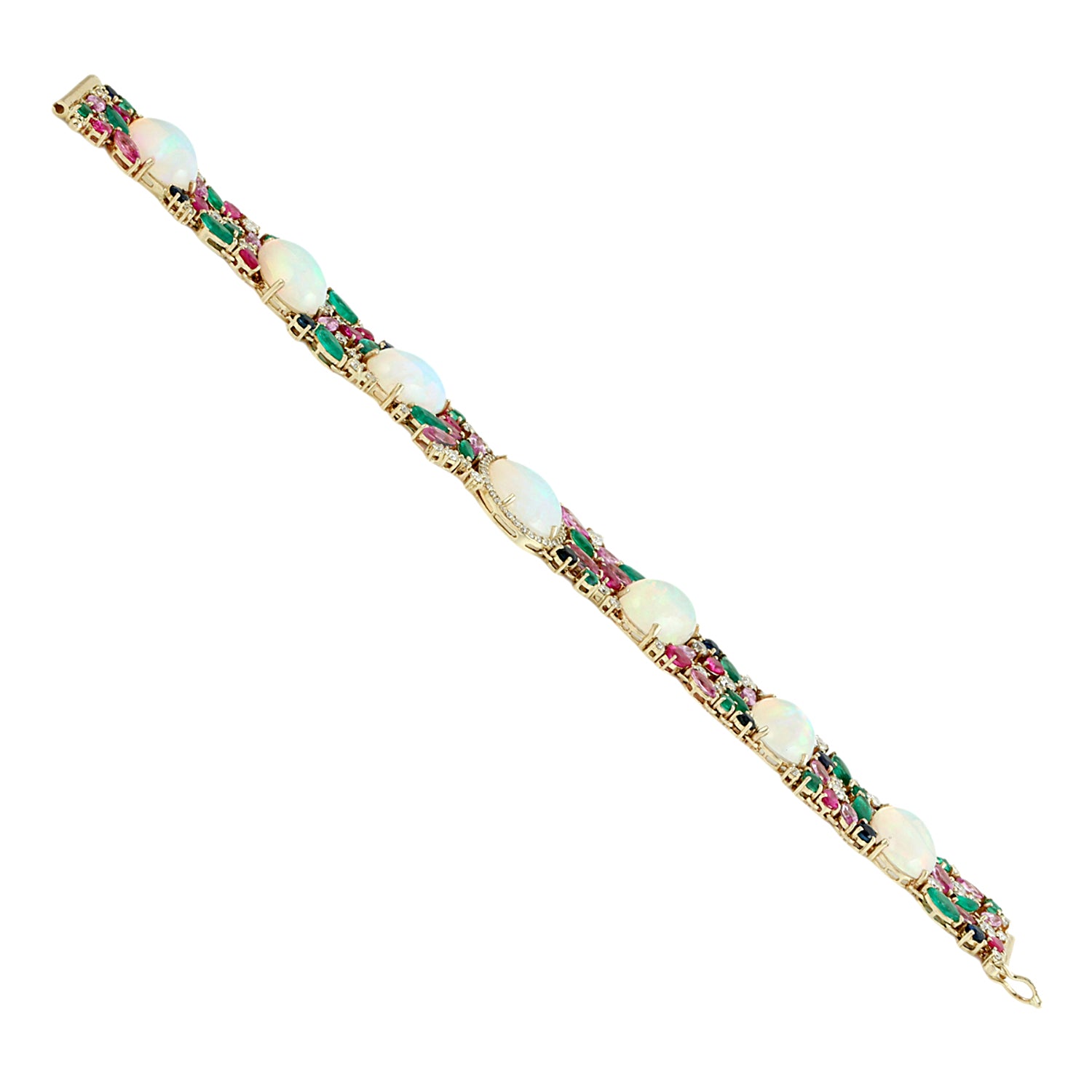 Opal, Ruby, Emerald, Sapphire & Diamond Statement Bracelet in 14K Yellow Gold