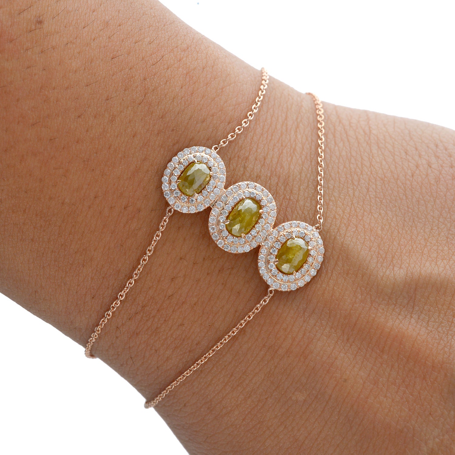 Oval Cut Ice Diamond Fixed and Flexible Bracelet in 18K Rose Gold Fine Jewelry