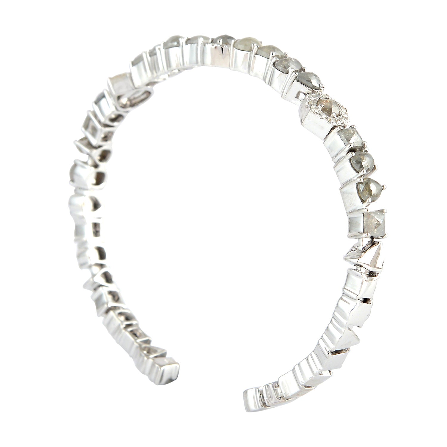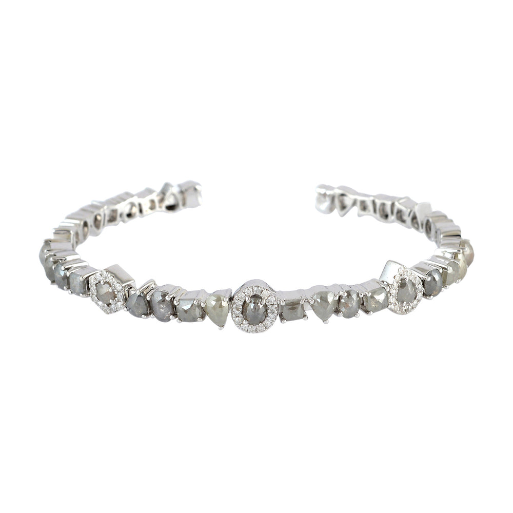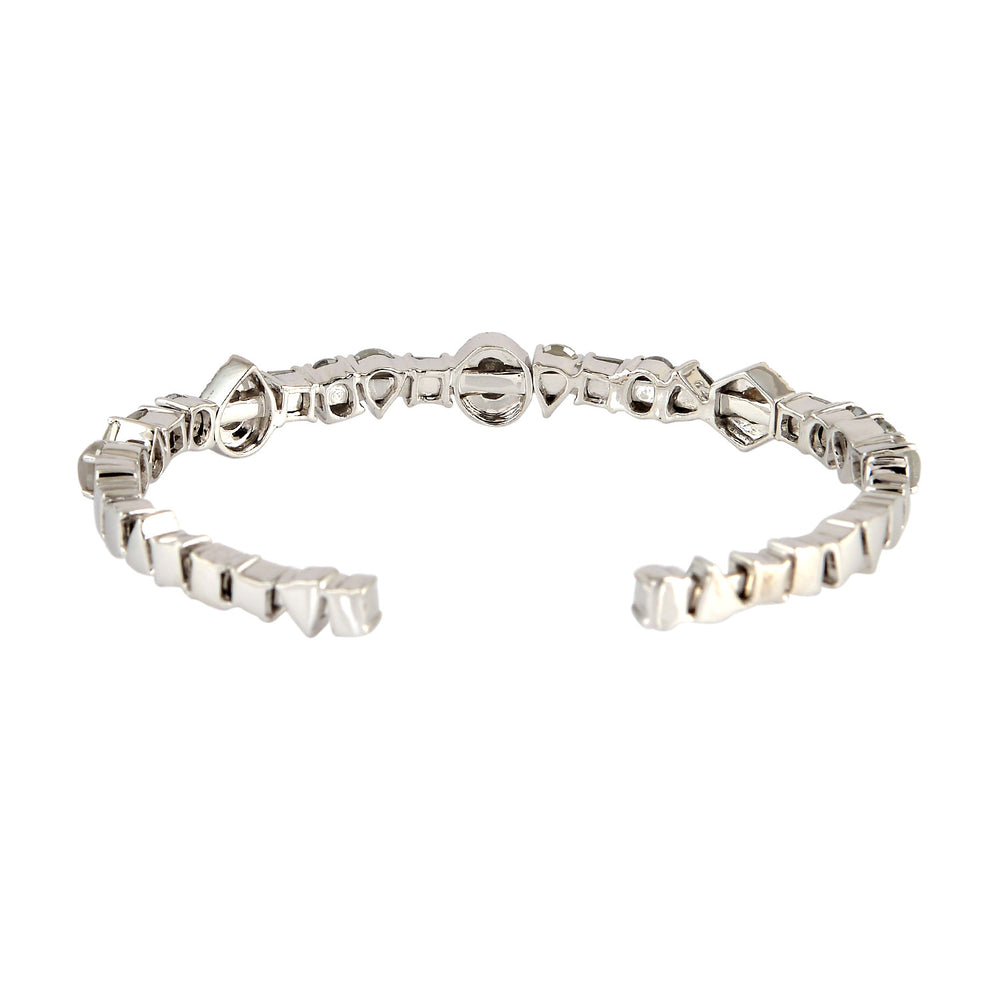 Natural Ice Diamond Designer Open Cuff Bangle 18K White Gold Jewelry
