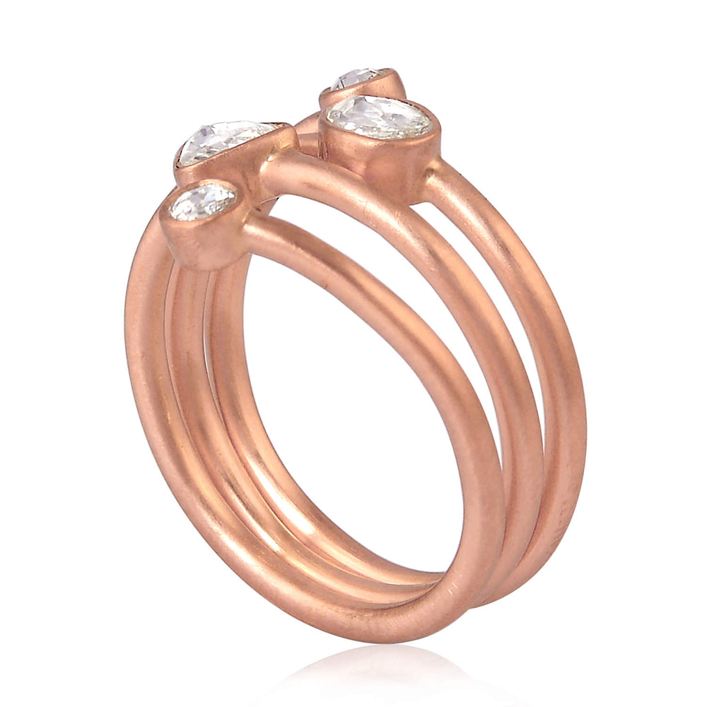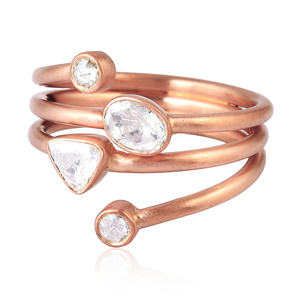 18K Rose Gold Bezel Set Rose Cut Diamond Spiral Ring For Women