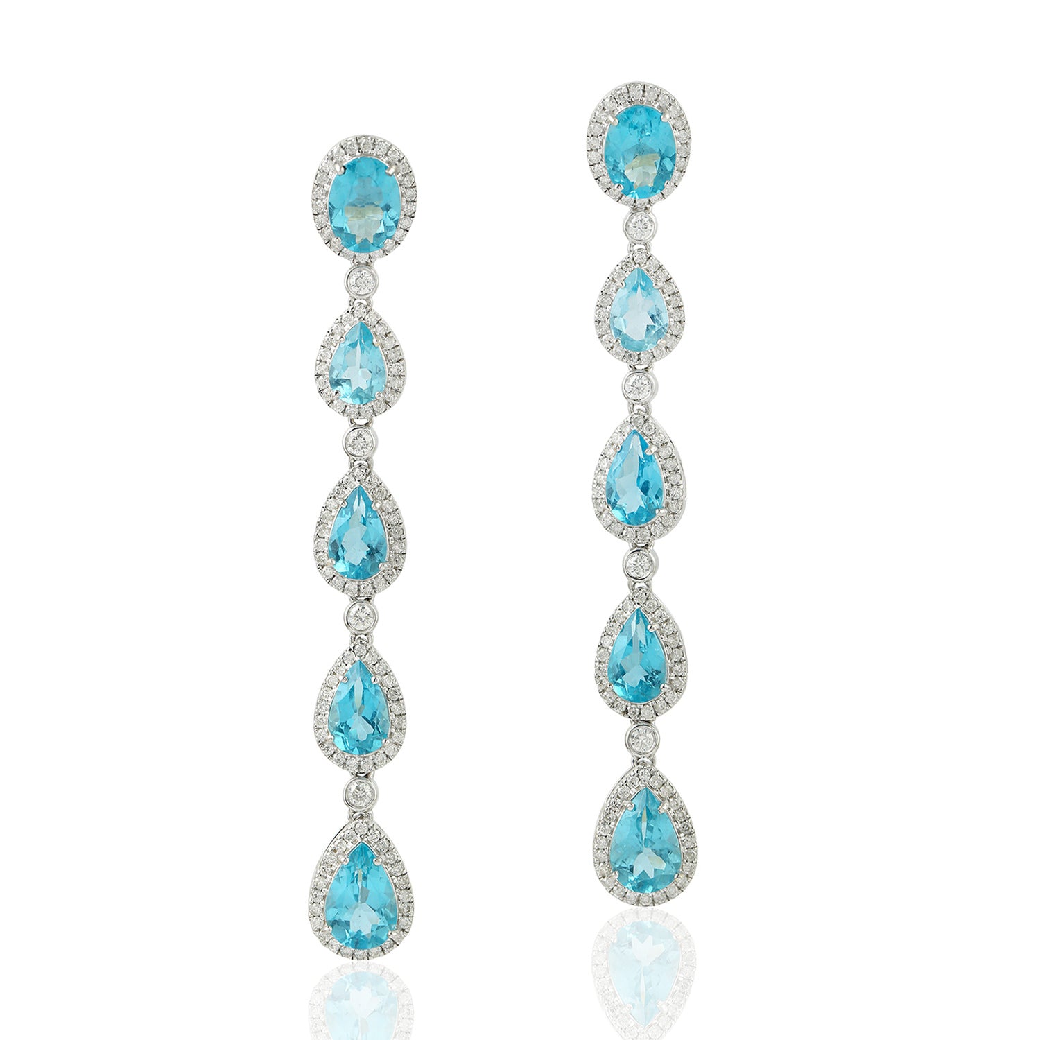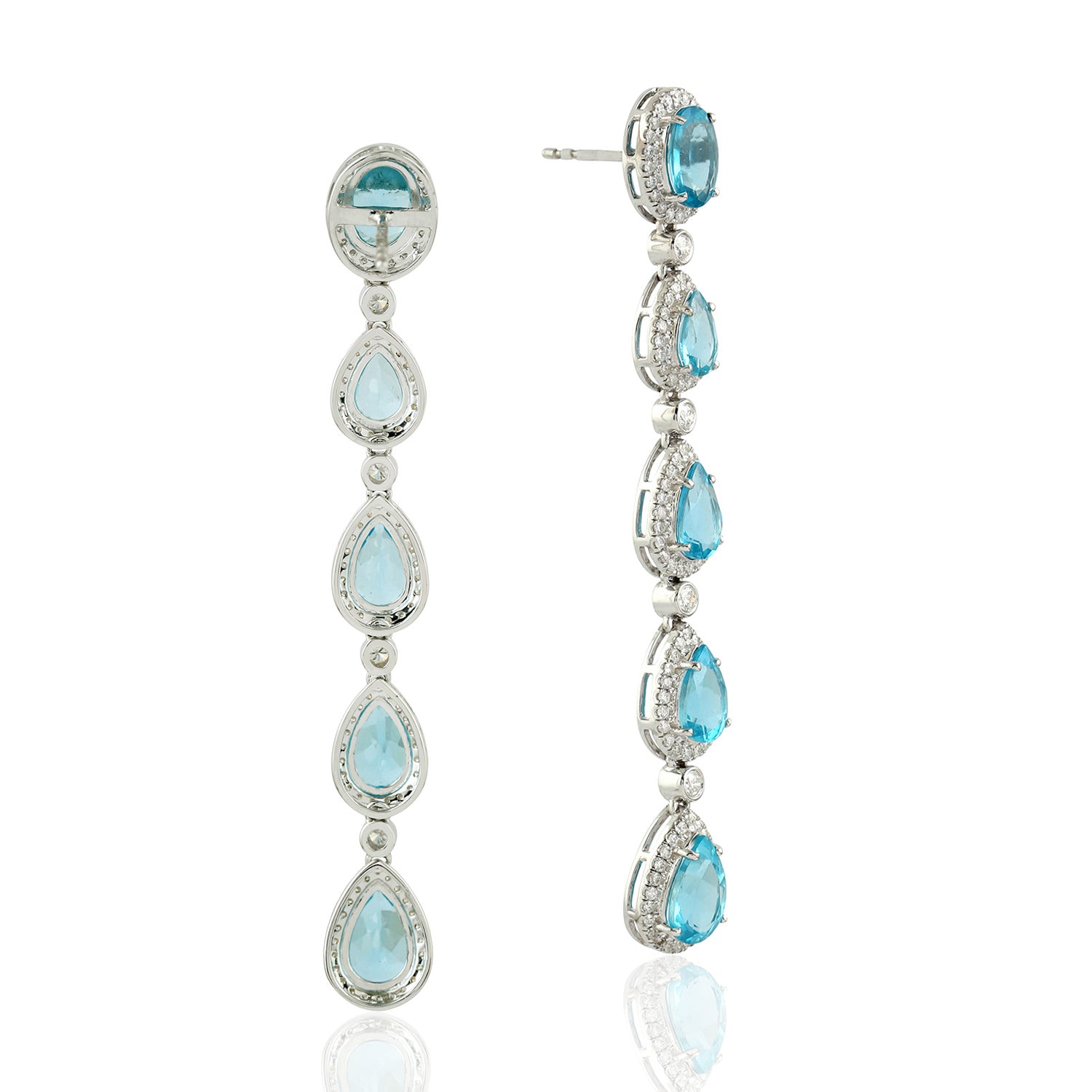 18K White Gold Prong Apatite December Birthstone Pave Diamond Designer Dangler