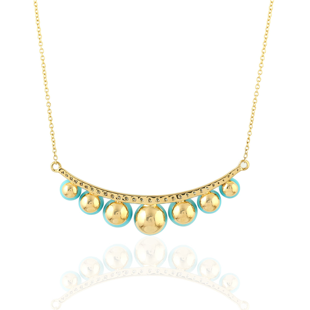 Ball Turquoise Prong Diamond December Birthstone Choker Necklace In Solid Gold
