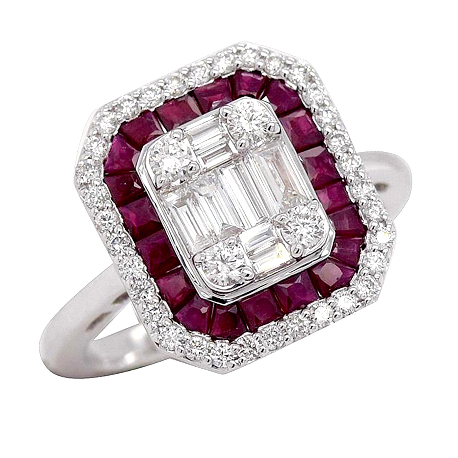 • Channel Set Ruby July Birthstone Pave Diamond Beautiful Ring In 18K White Gold