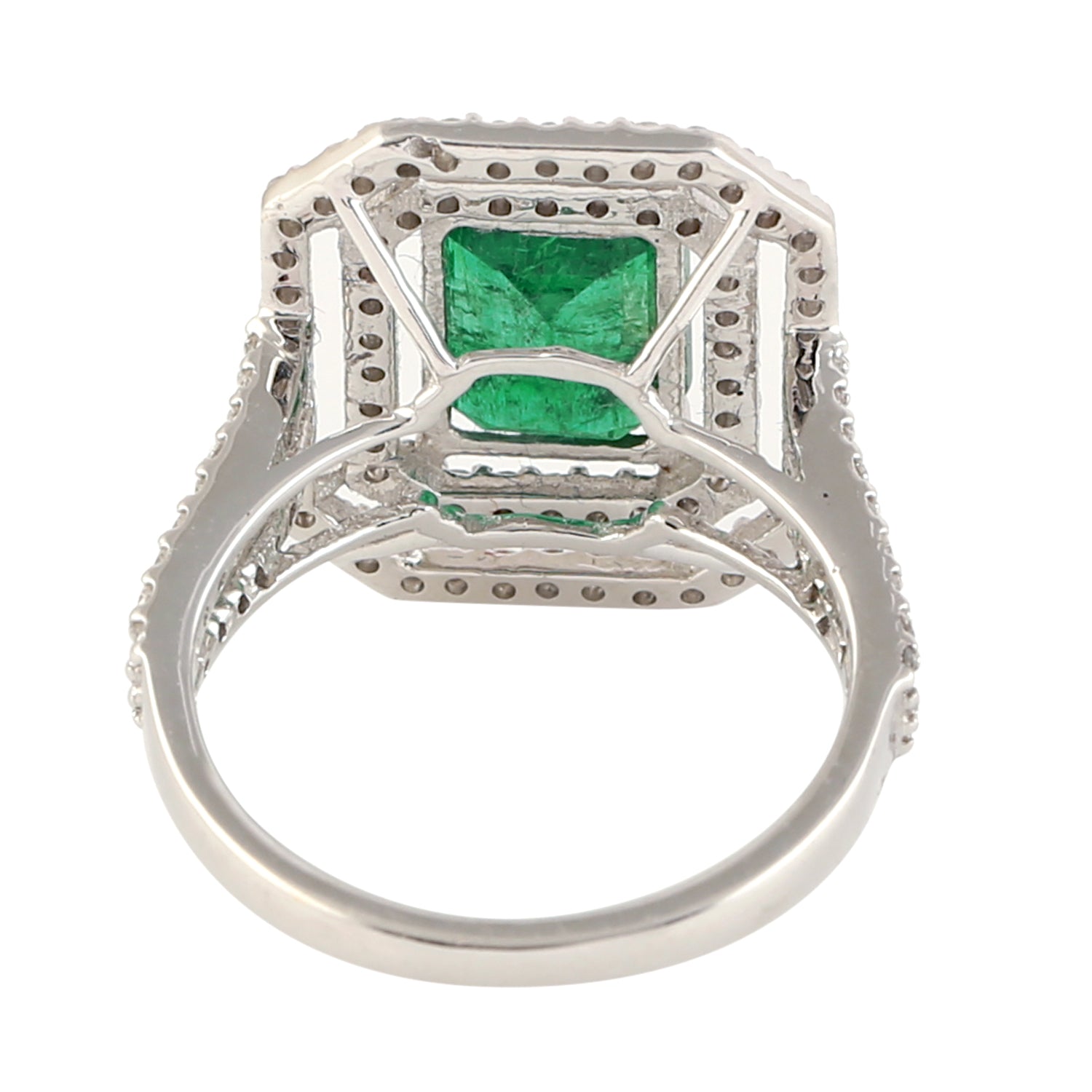 Emerald Cut Emerald May Birthstone Pave Diamond Solitaire Ring In 14K White Gold