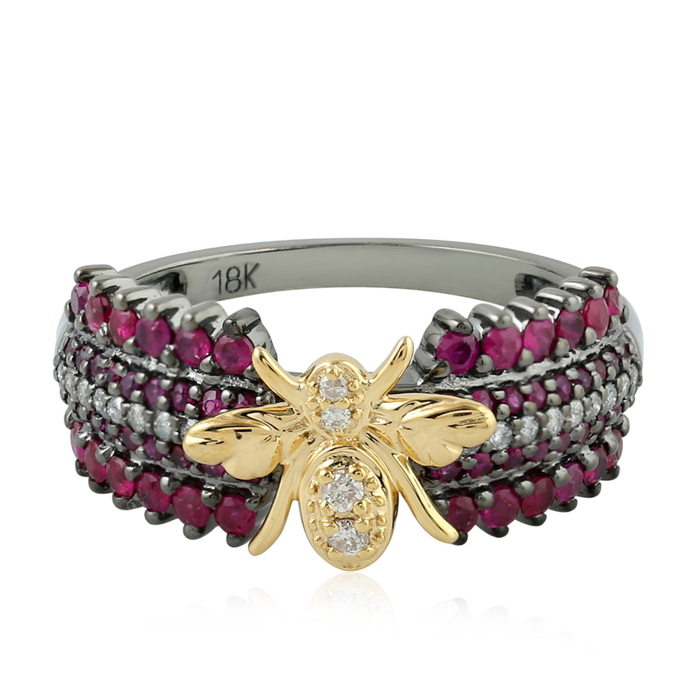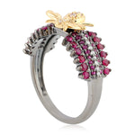 Housefly Band Ring Ruby July Birthstone Diamond In 18k Oxidized Gold