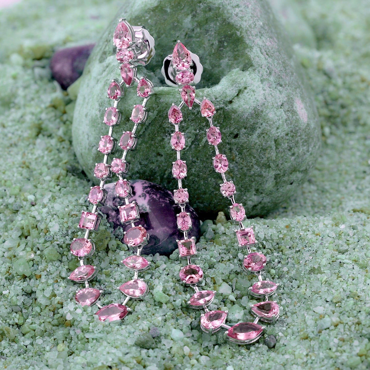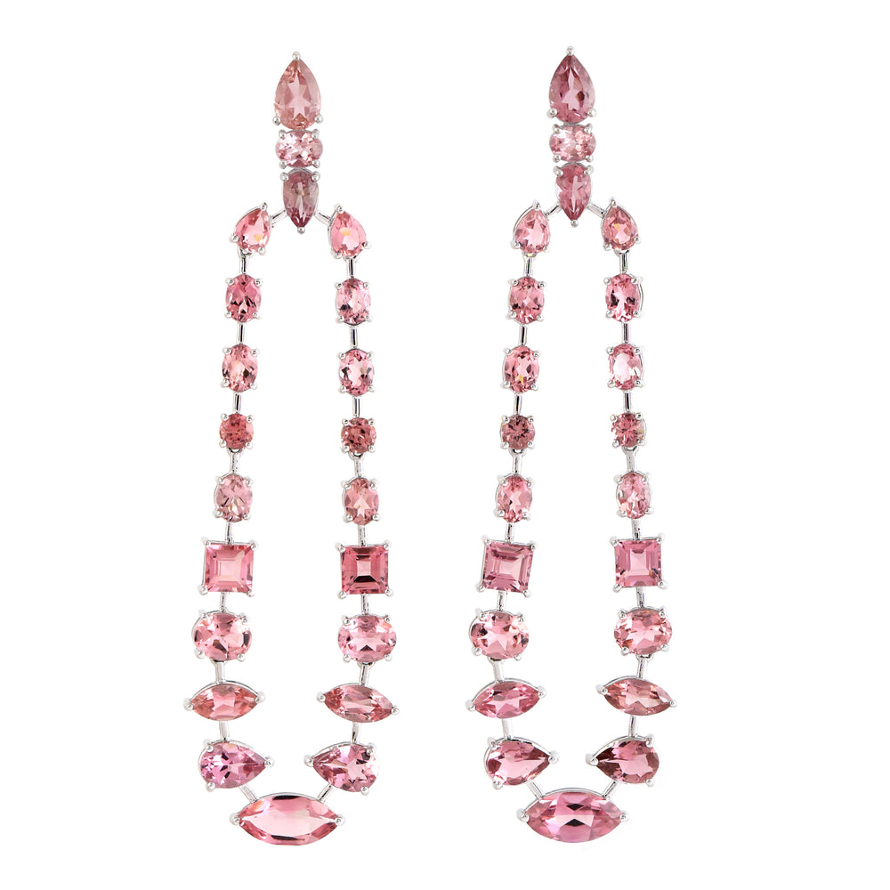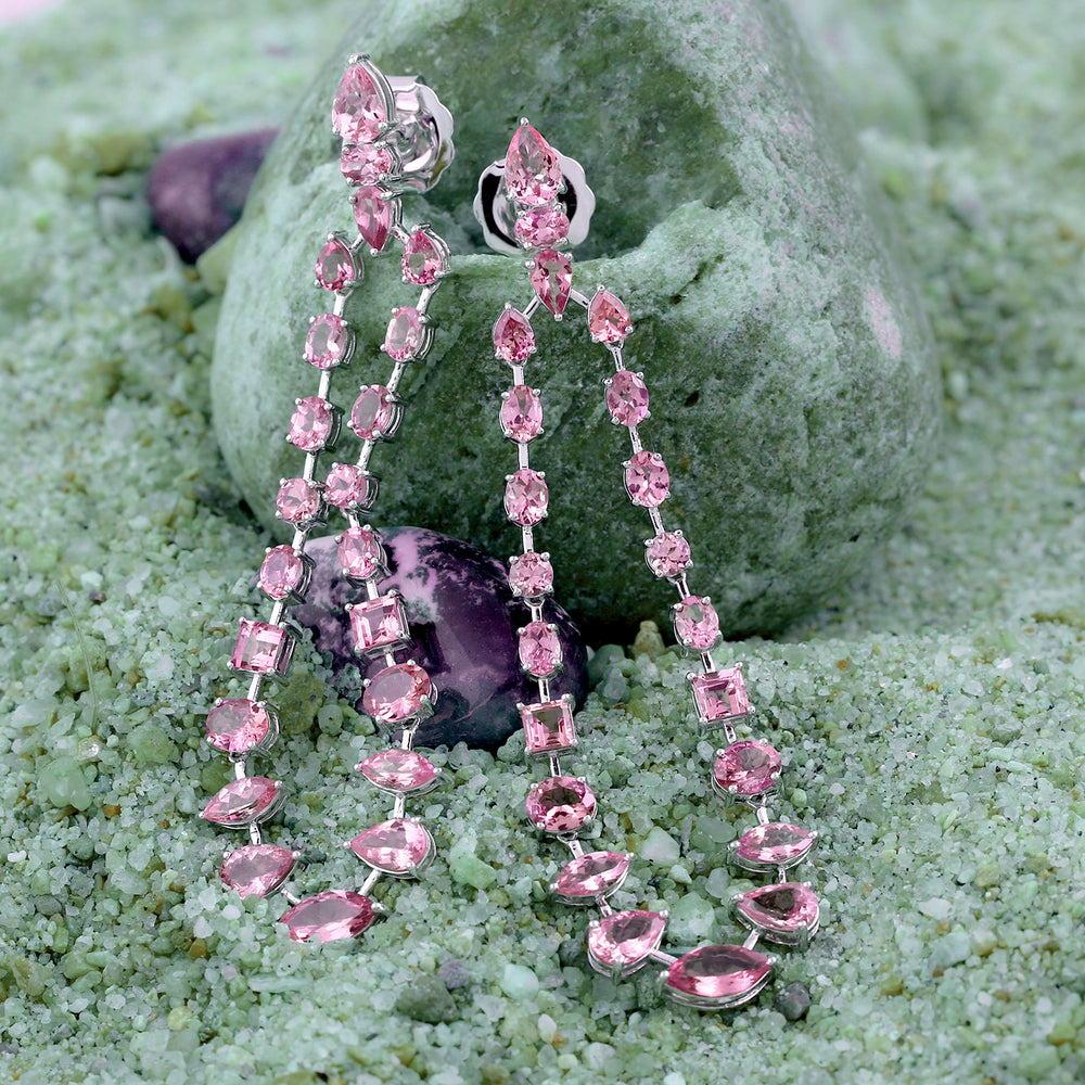 Pink Tourmaline Gemstone Chandelier Earrings In 18k White Gold