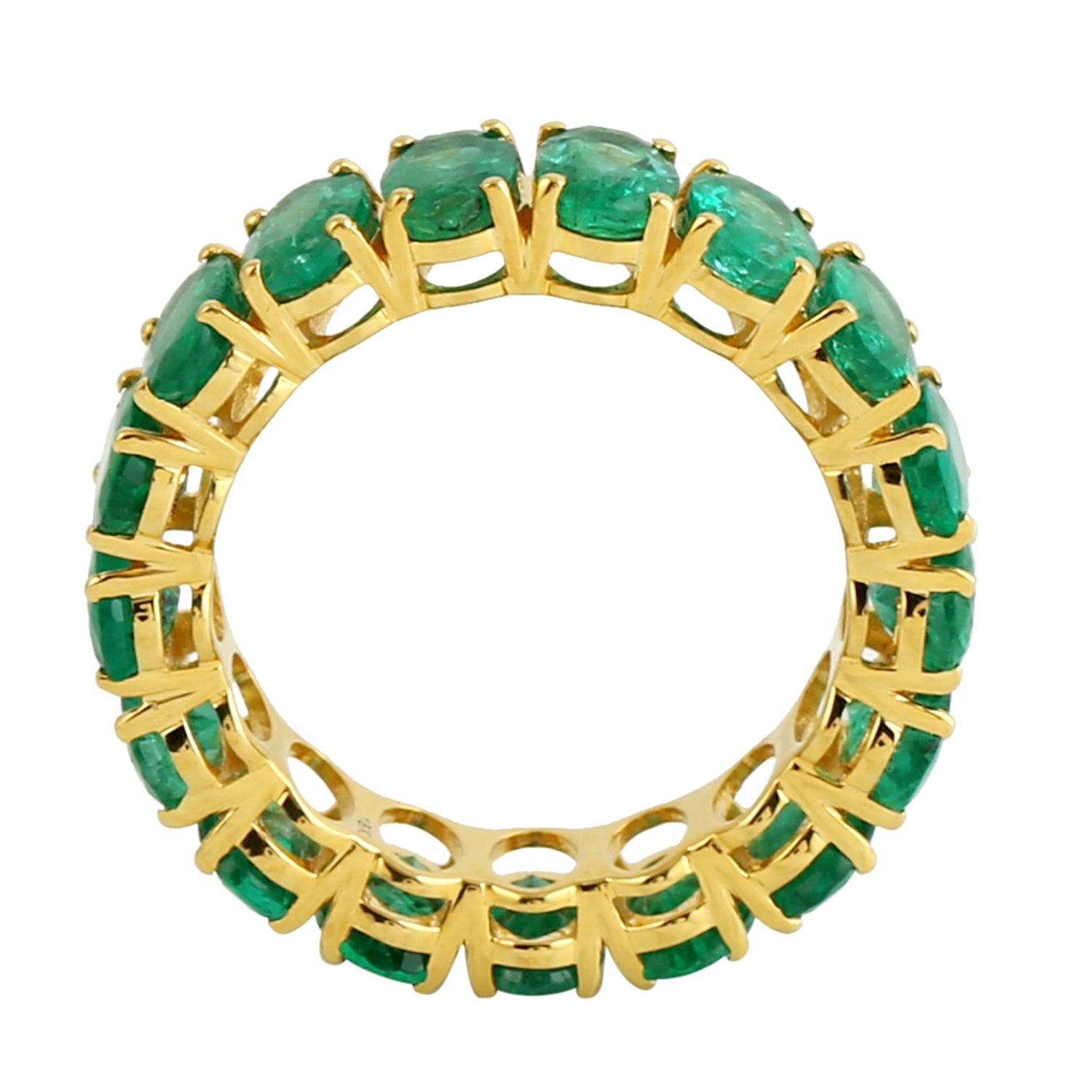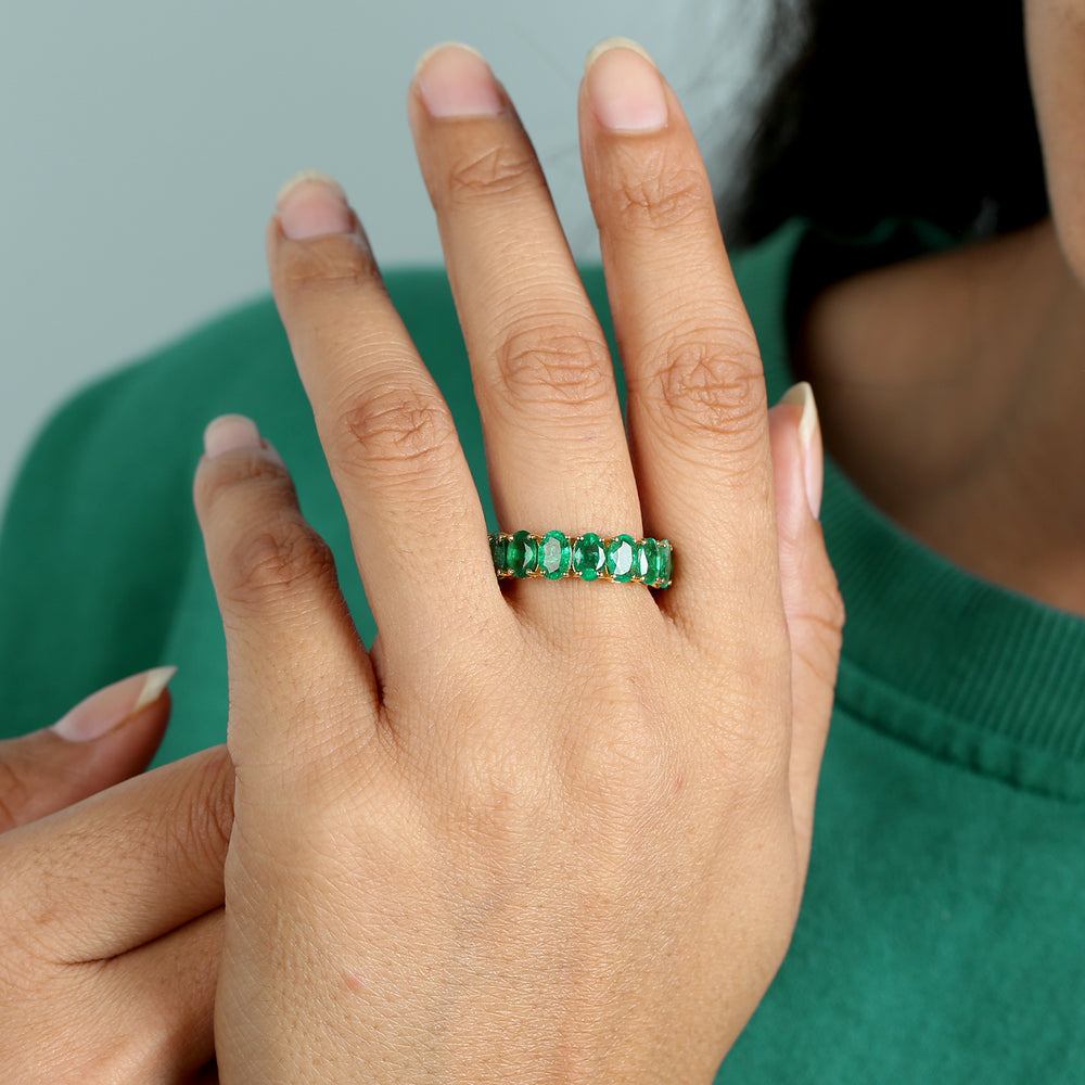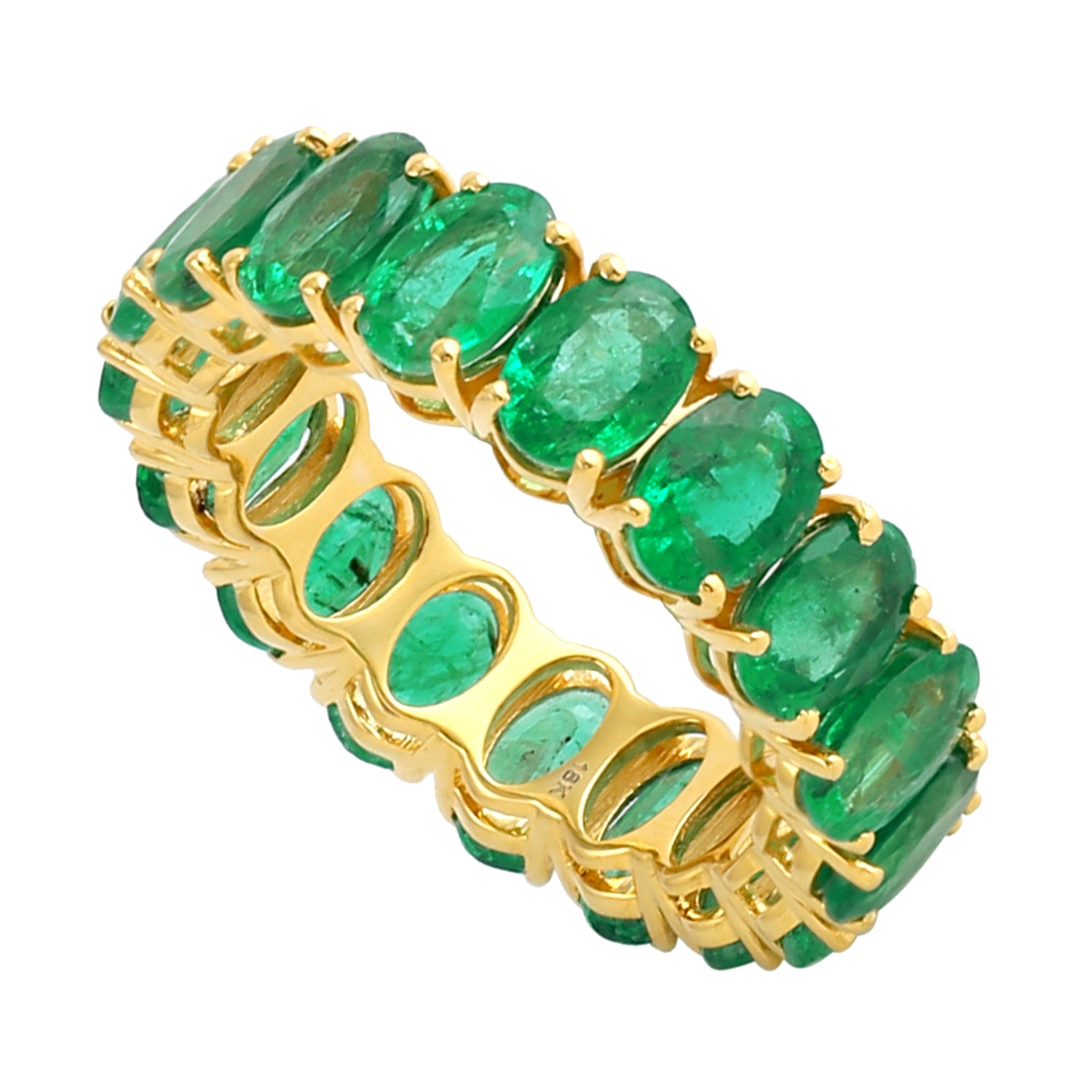 Oval Cut Emerald May Birthstone Full Eternity Band Ring In 18k Yellow Gold