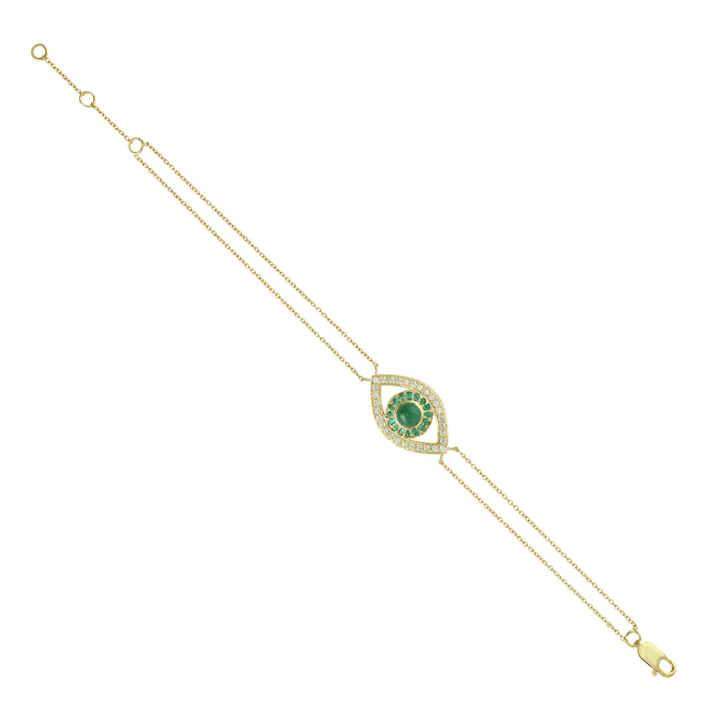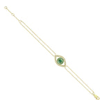 • 14k Yellow Gold Chain Diamond Emerald Evil Eye Charm Bracelet