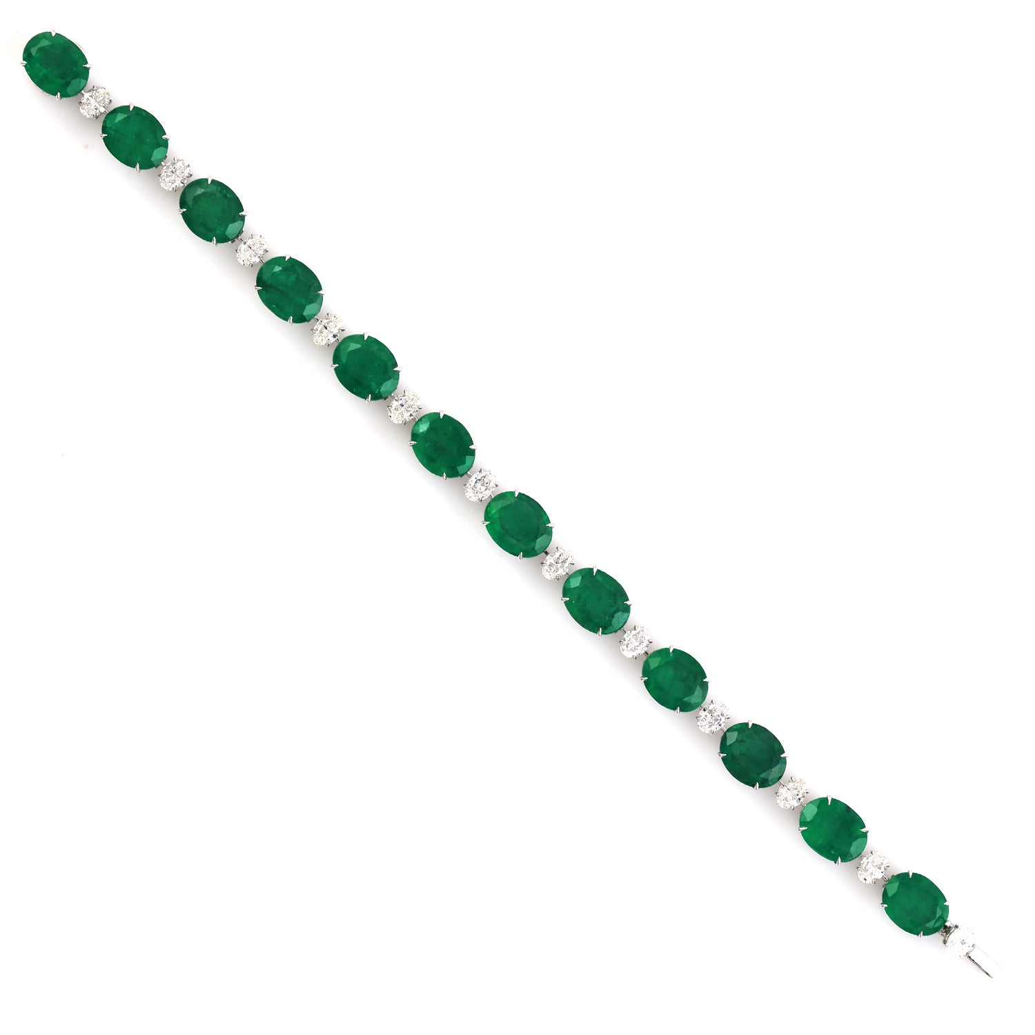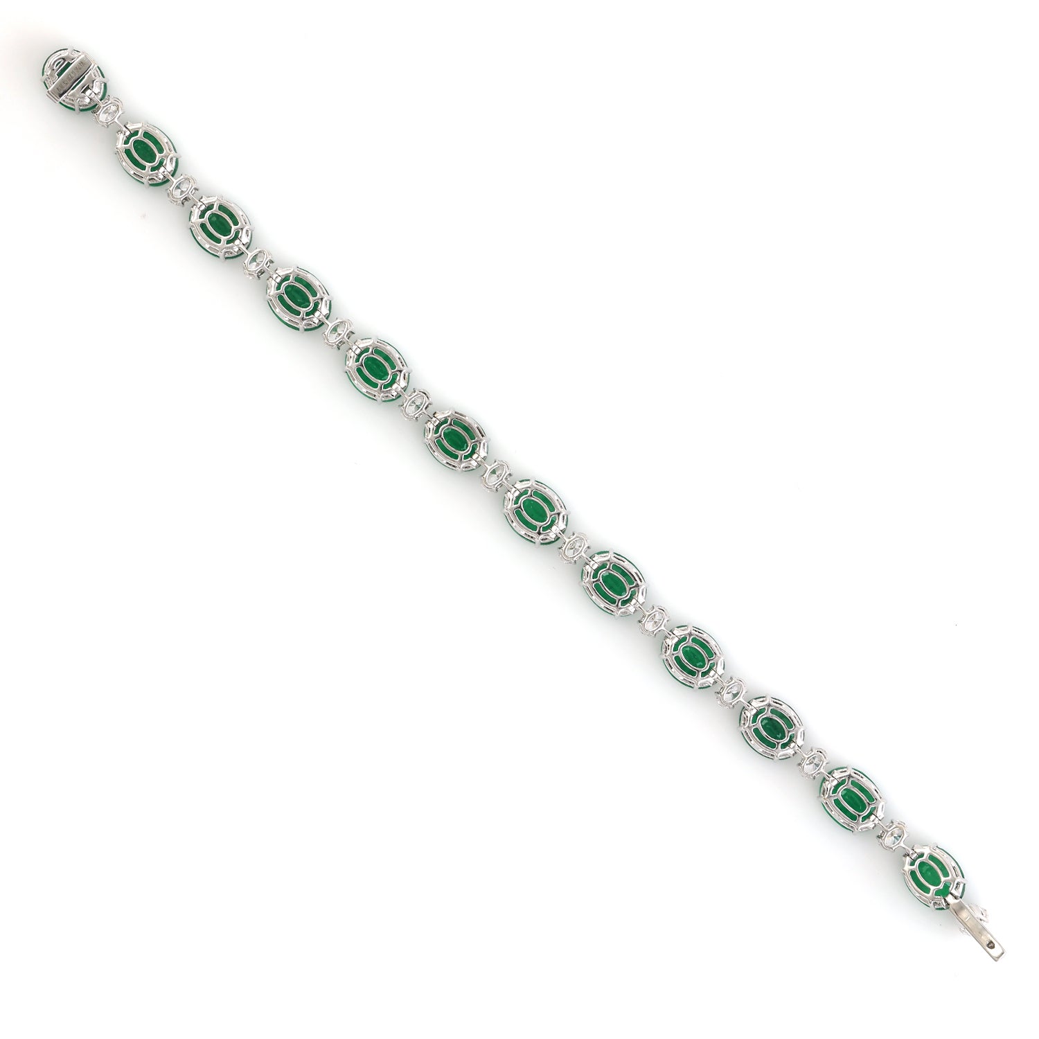 Oval Cut Faceted Emerald Oval Diamond Link Designer Bracelet In 18k White Gold For Her