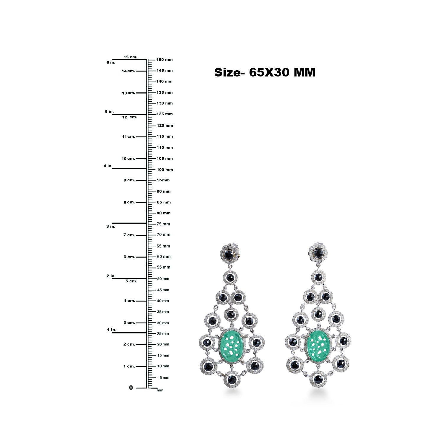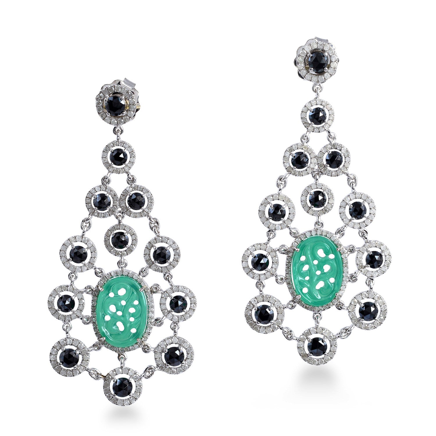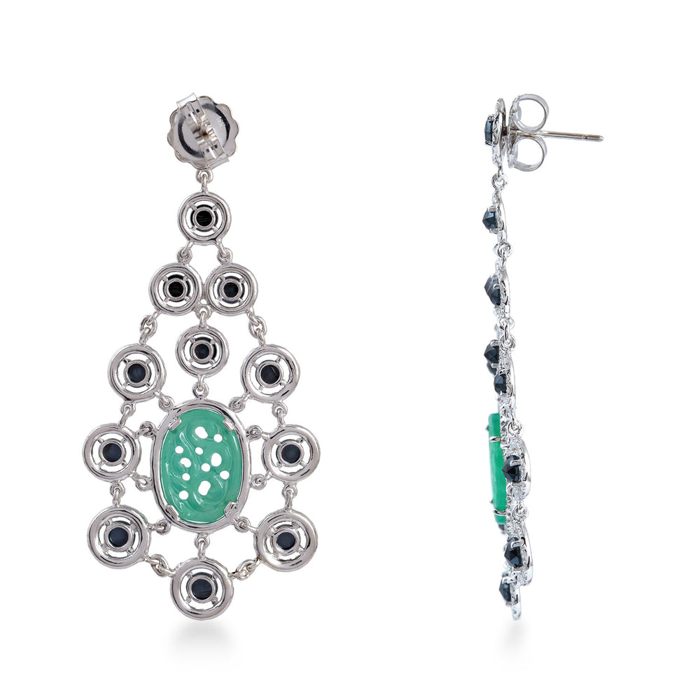 Carved Onyx Round Spinel Pave Diamond Chandelier Earrings In White Gold 925 Silver