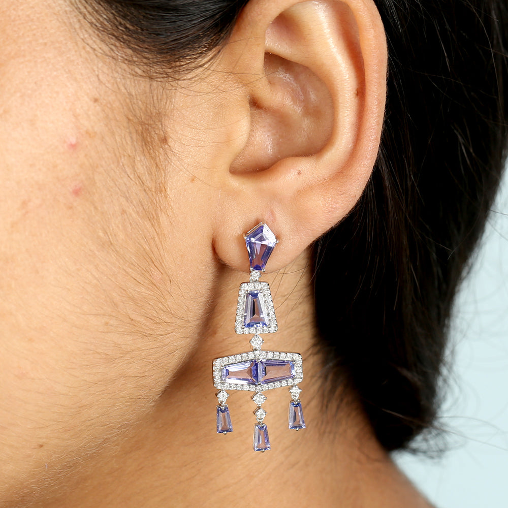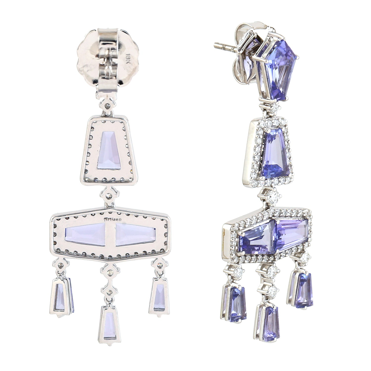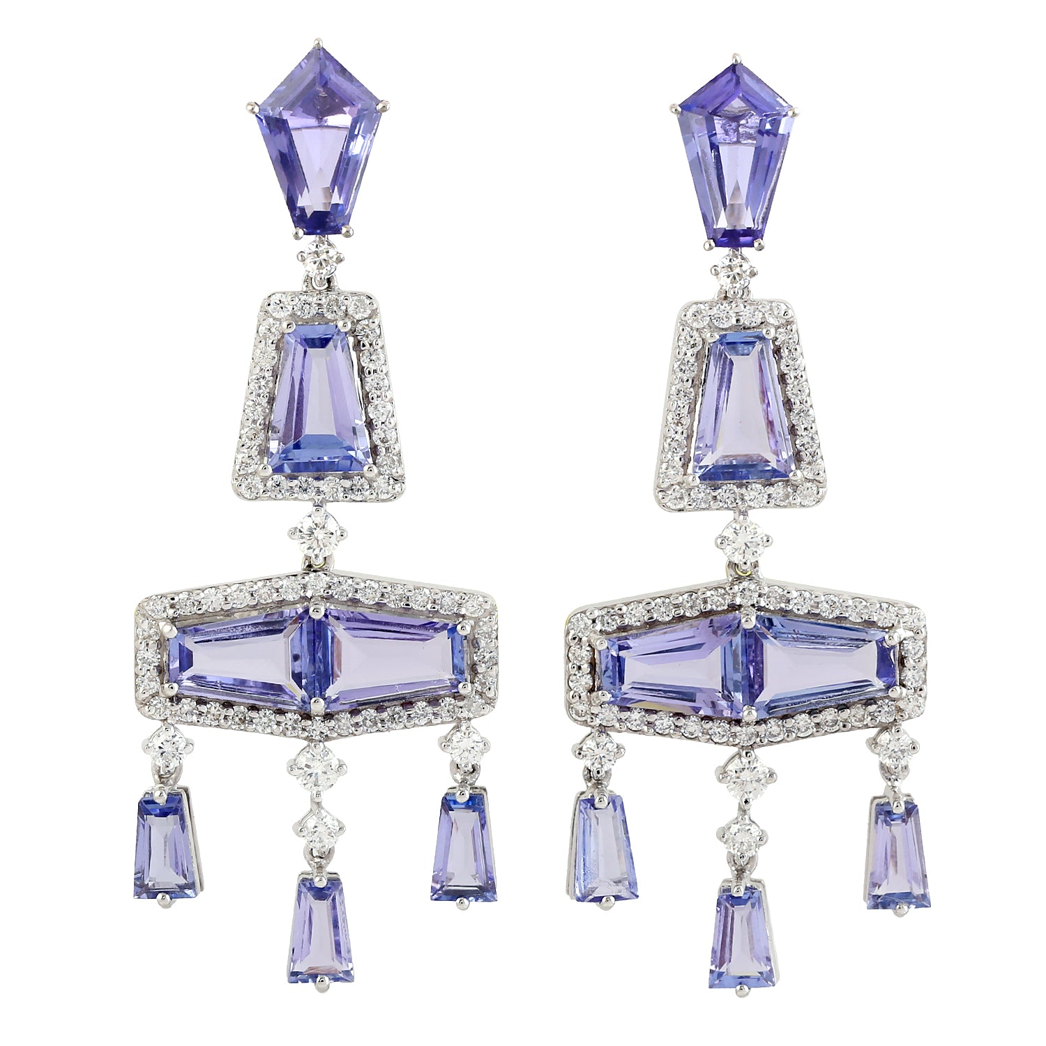 18K White Gold Tanzanite Gemstone Chandelier Earrings with Pave Diamond Accents