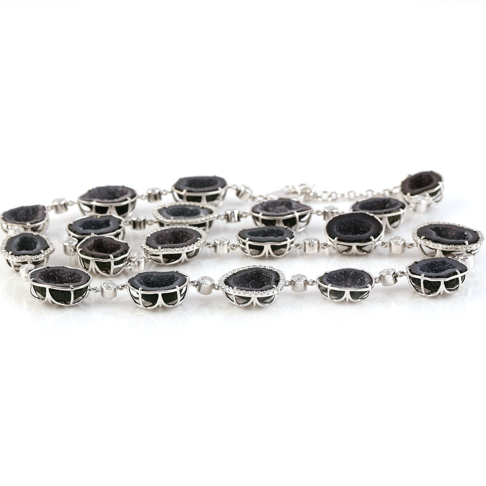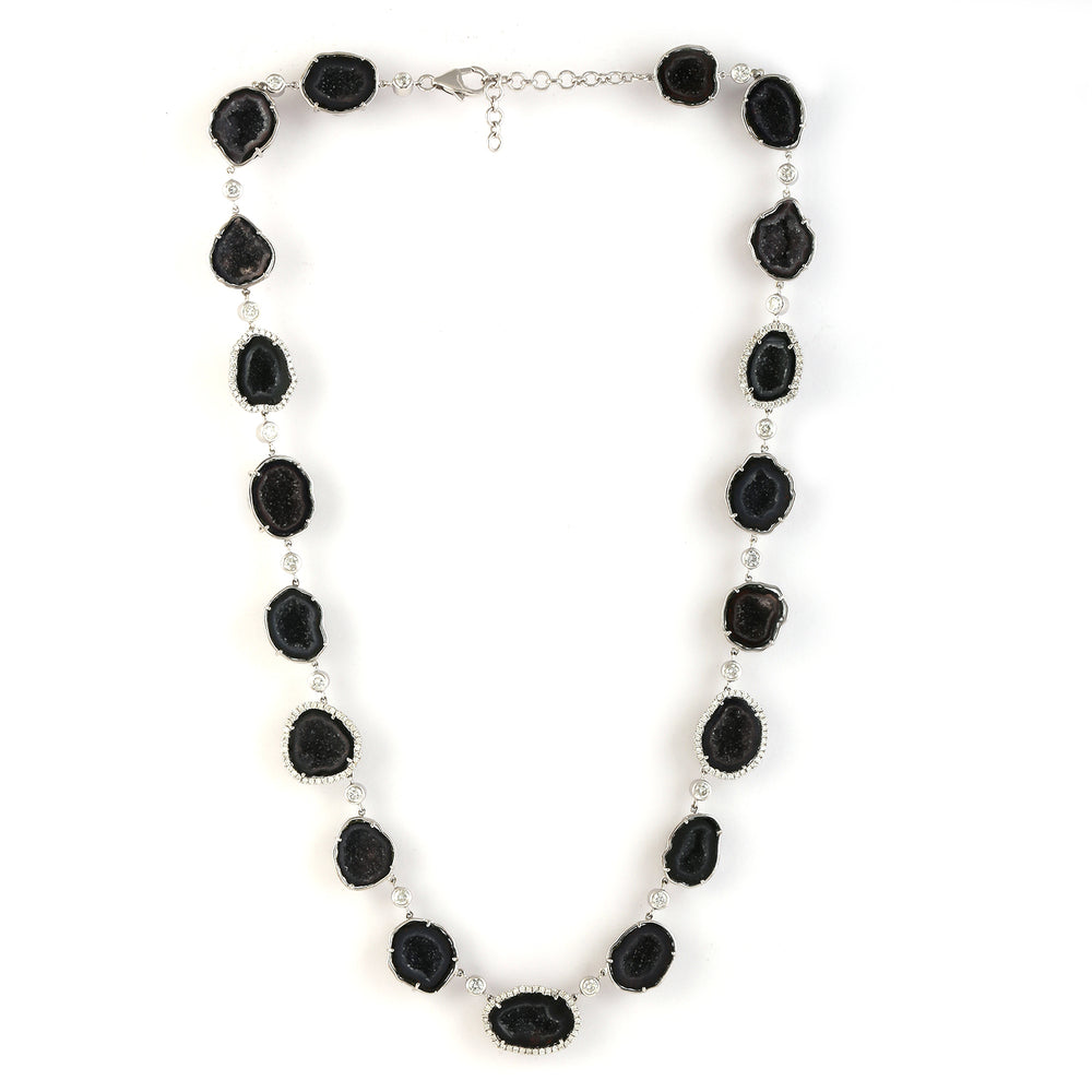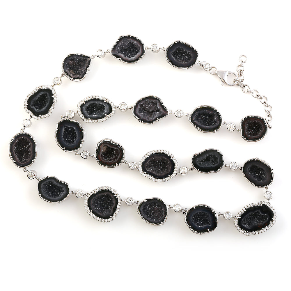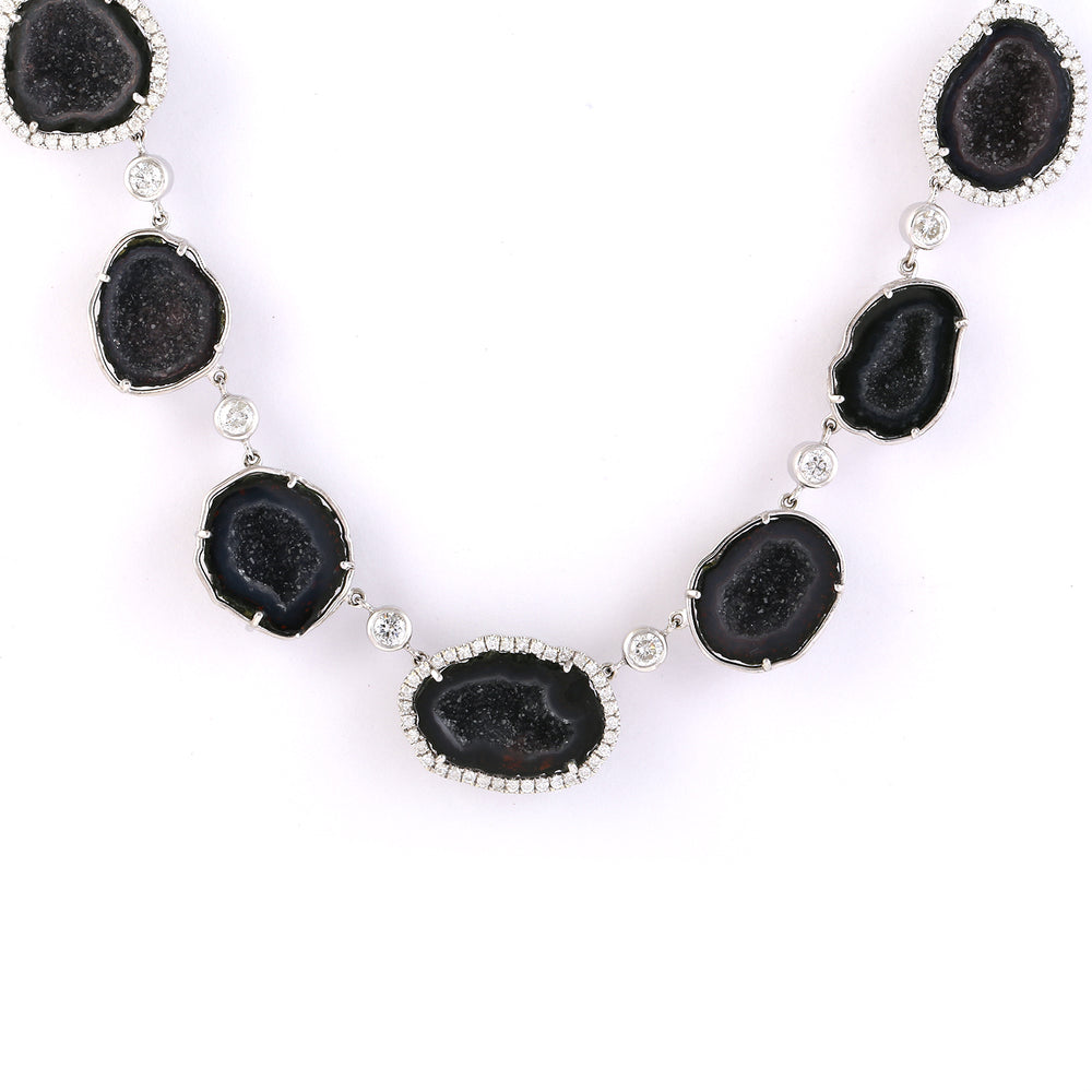 Uneven Geode Gemstone Pave Diamond In White Gold Choker Necklace For Women's