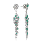 Pear-Cut Emerald Drop Earrings with Rose-Cut Diamonds in 18K White Gold