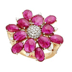 Emerald Precious Gemstone Pave Diamond Pear Cocktail Ring In 18K White Gold