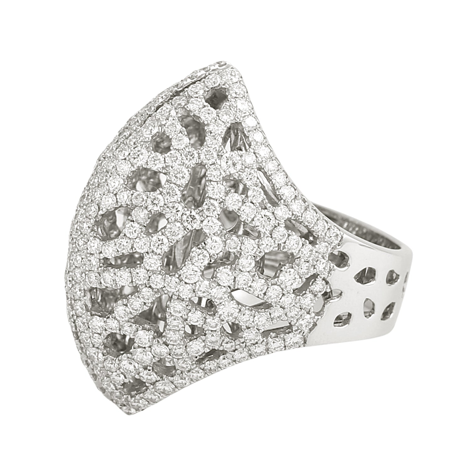 Luxury Long Diamond Cocktail Ring in White Gold – Micro Pave Design