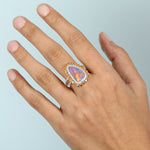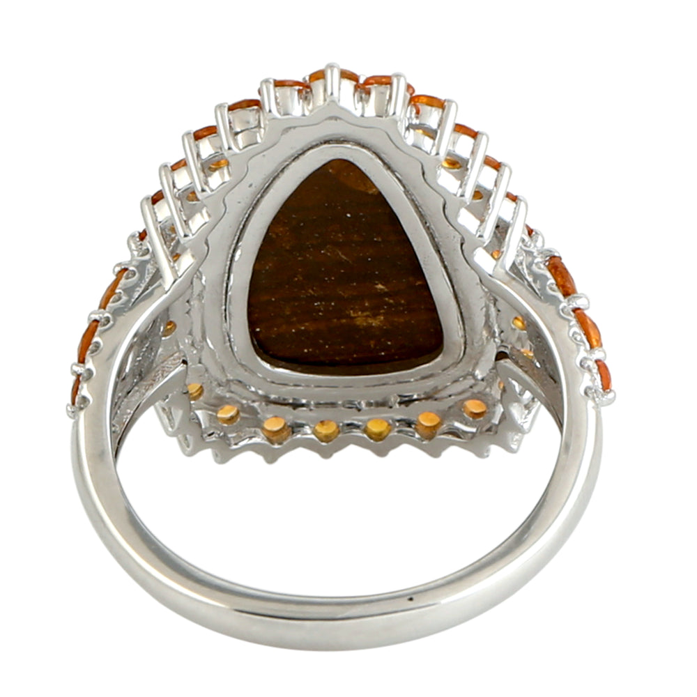 Opal Doublet Prong Garnet Mandarin Diamond Trillion Ring In 18k Yellow Gold