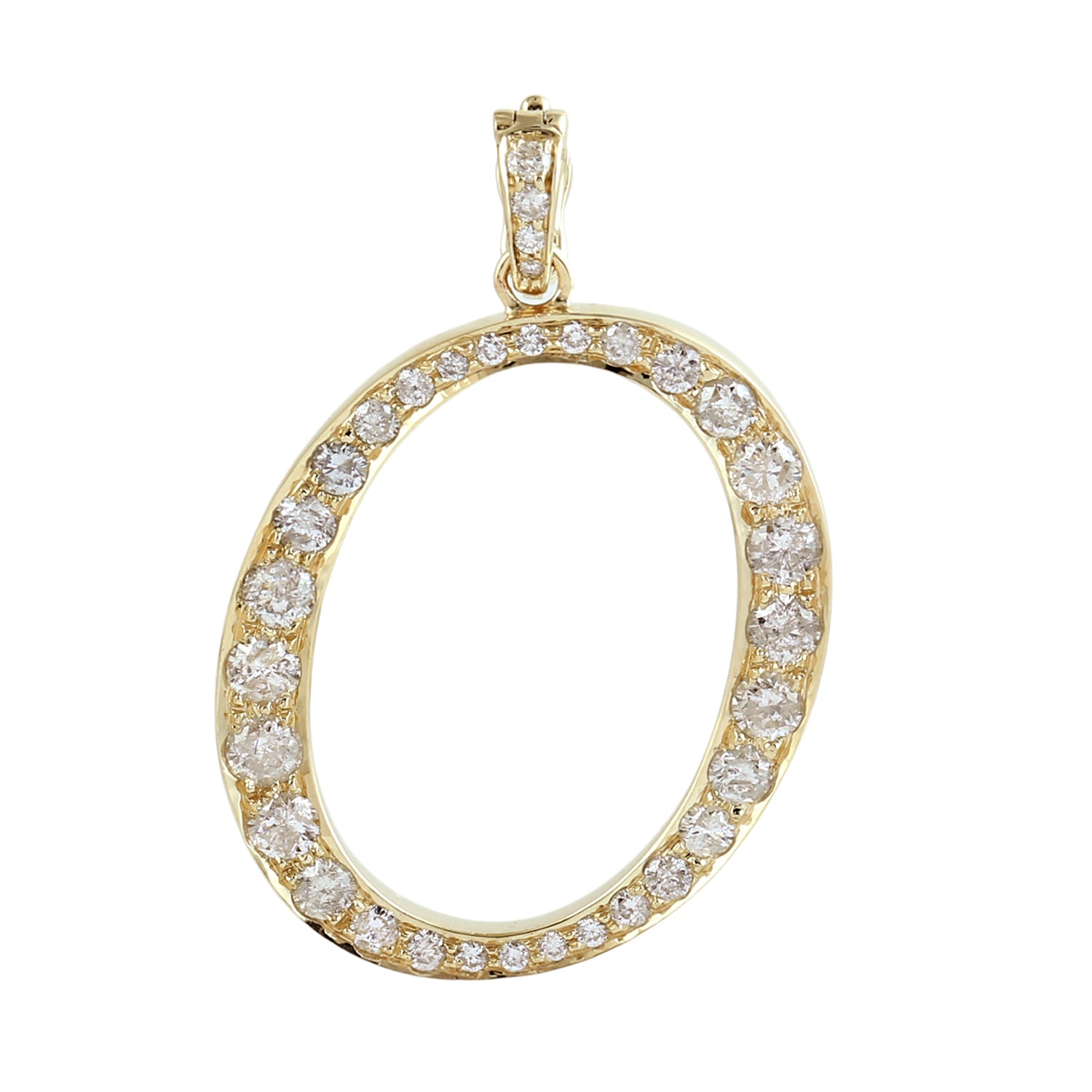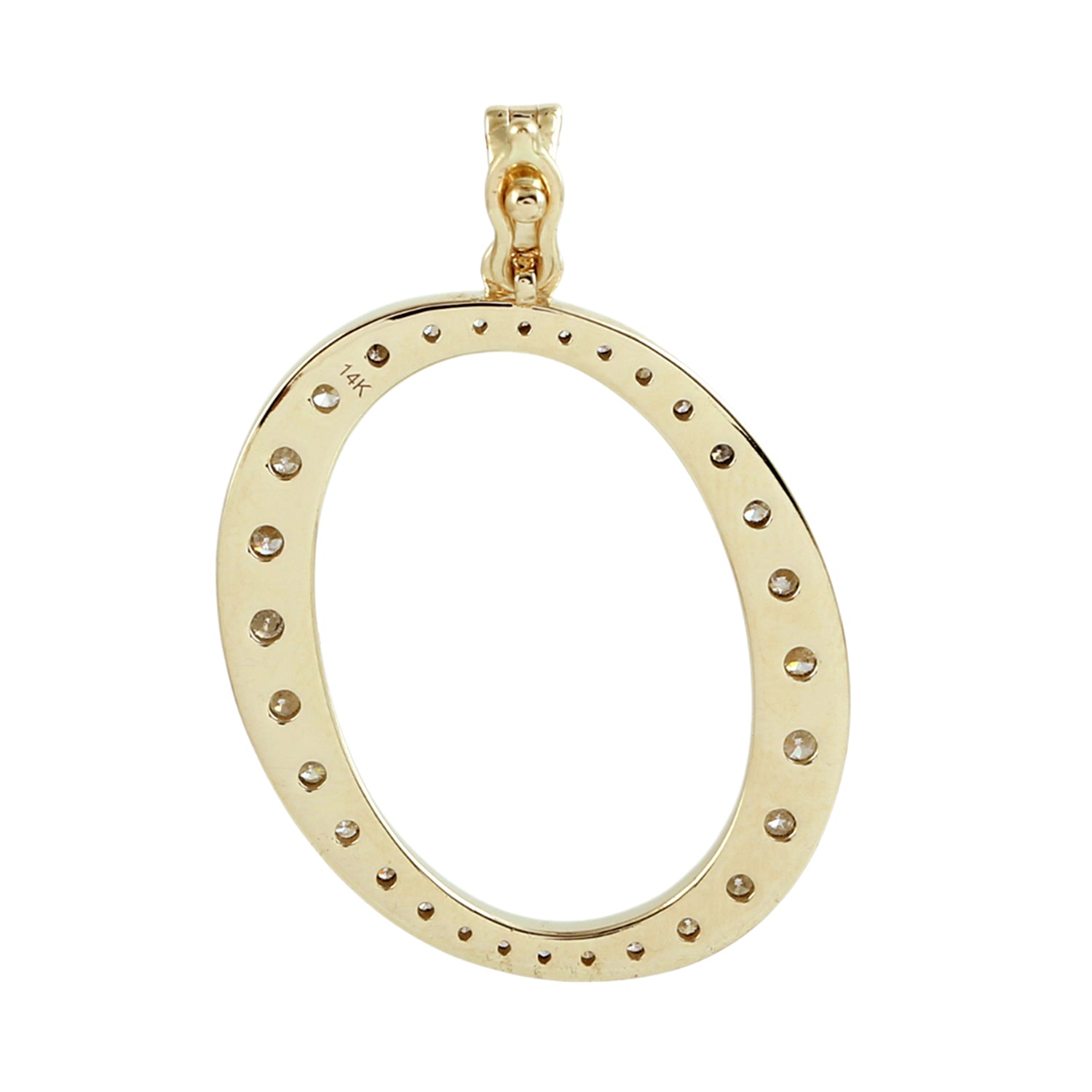 14K Yellow Gold Micro Pave Diamond "O" Initial Alphabet Pendant