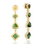 Green Tourmaline Gemstone Pave Diamond Dangler In 18K Yellow Gold