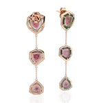 Melon Tourmaline Long Earrings in 18k Rose Gold – Bold Gemstone Statement Jewelry