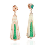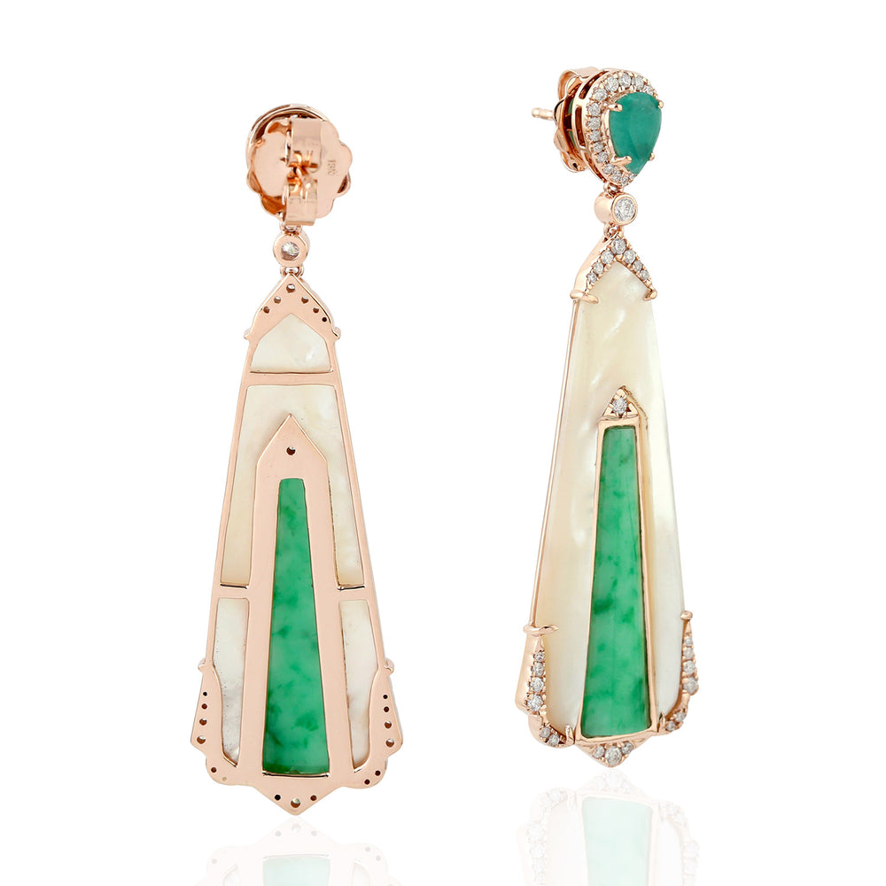 MOP Pear Emerald Jade Pave Diamond Drop/Dangle Earrings In Rose Gold