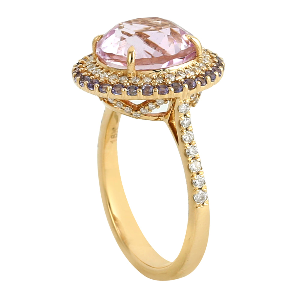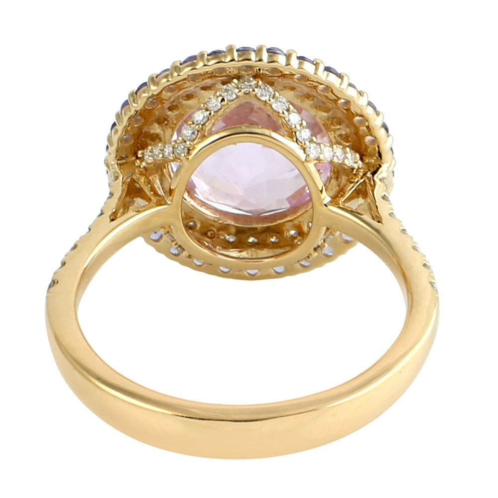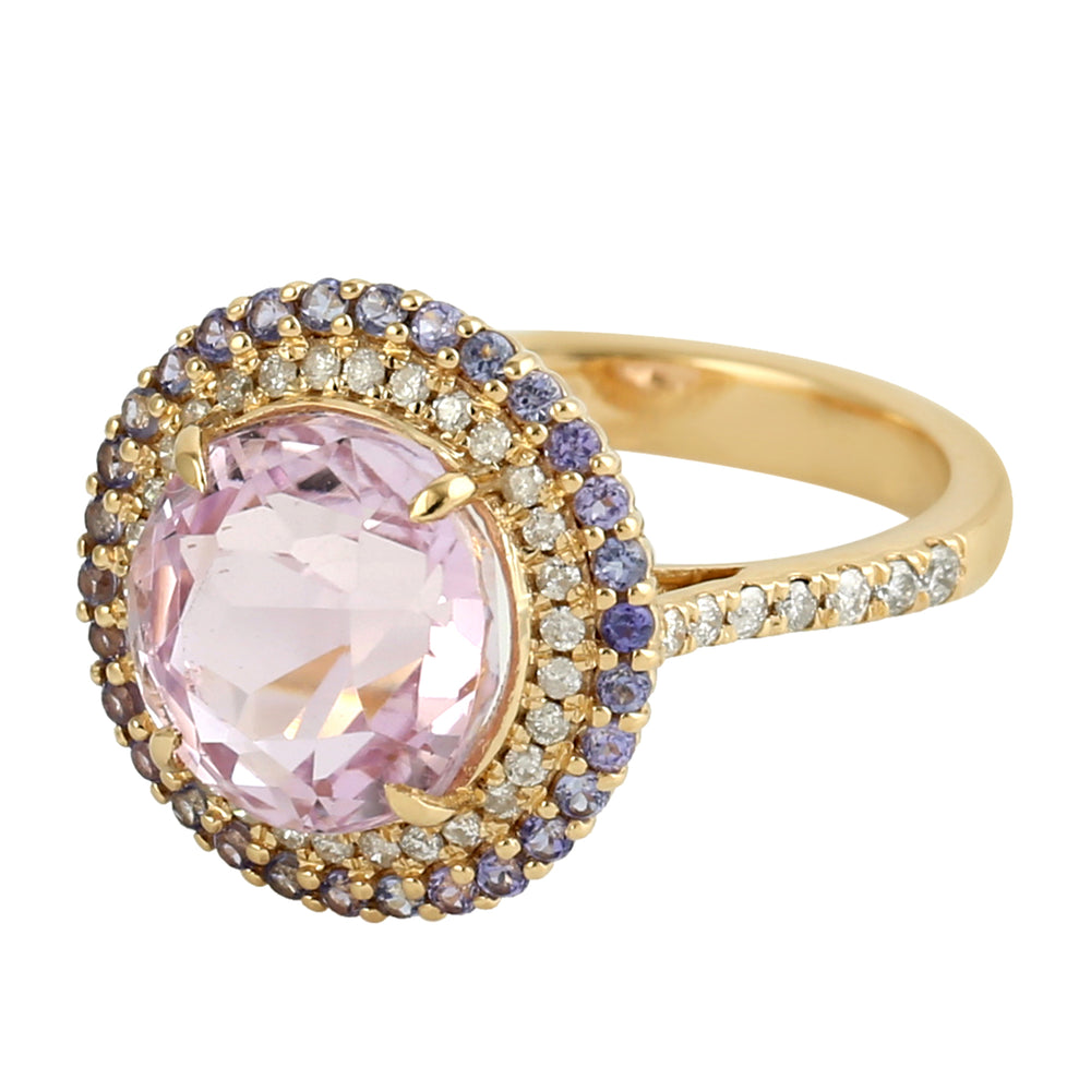 Round Cut Kunzite Pave Tanzanite Diamond Solitaire Ring In 18k Yellow Gold