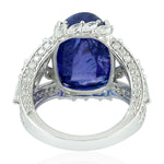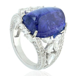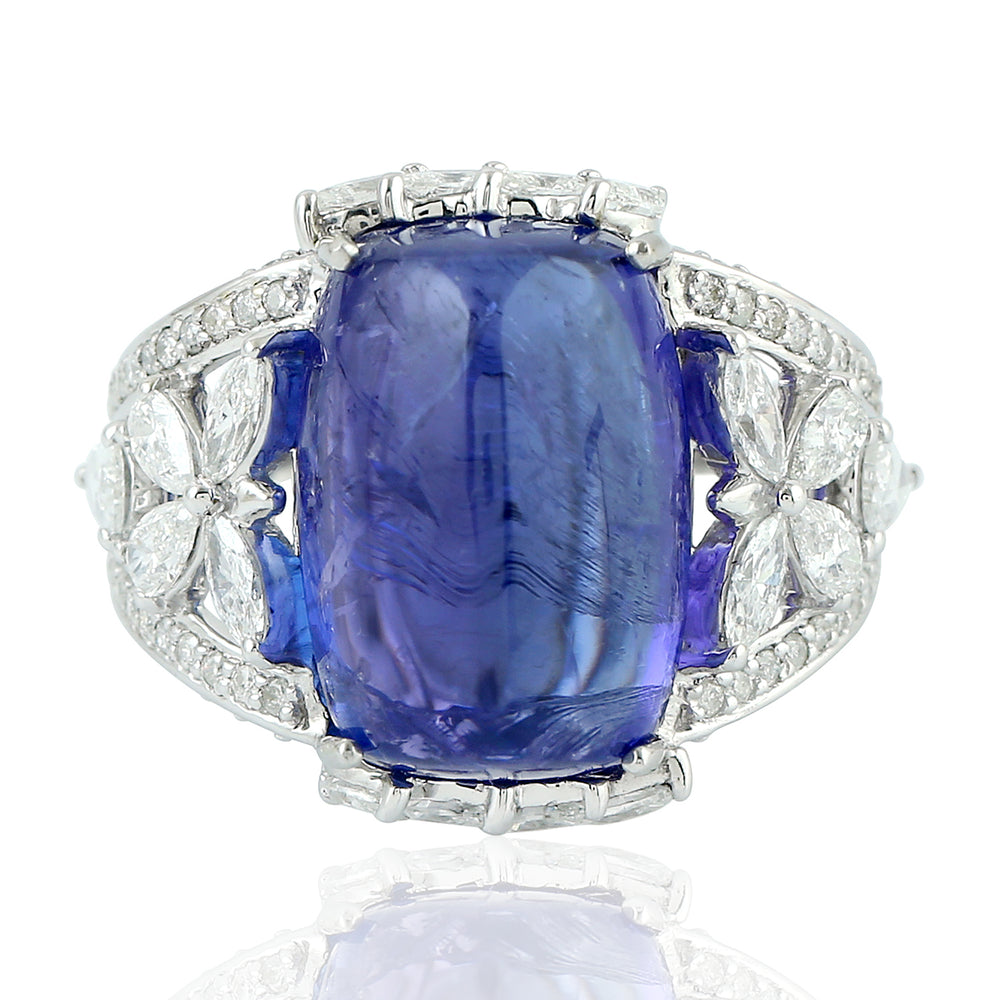 Cushion Cut Tanzanite Prong Rose Cut Diamond Wedding Ring In 18K White Gold