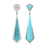 Fancy Turquoise Gemstone Micro Pave Diamond Long Danglers In 18K White Gold