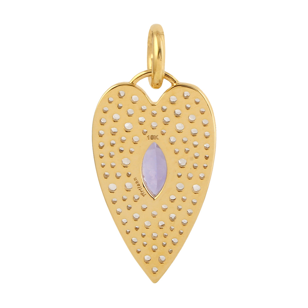 Marquise Cut Tanzanite Pave Diamond Heart Shape Pendant In 18K Yellow Gold For Her