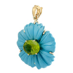 Oval Peridot Carved Turquoise Gemstone 18K Yellow Gold Pendant Jewelry Black Friday Gifts