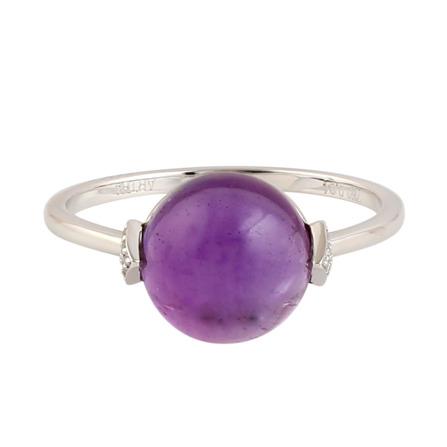 Amethyst Gemstone Pave Diamond Designer Ring In 18k White Gold