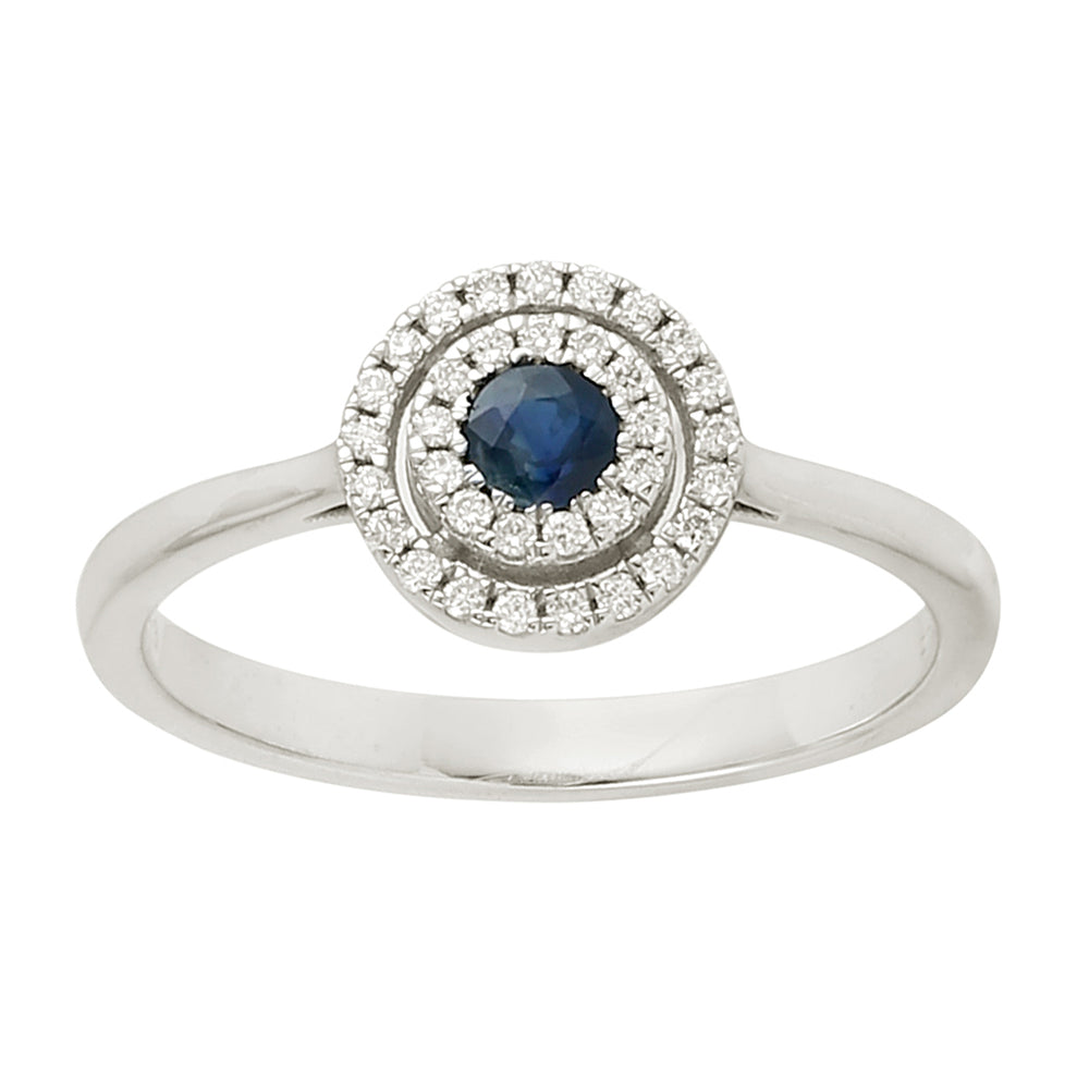 Blue Sapphire Pave Diamond Designer Band Ring In White Gold