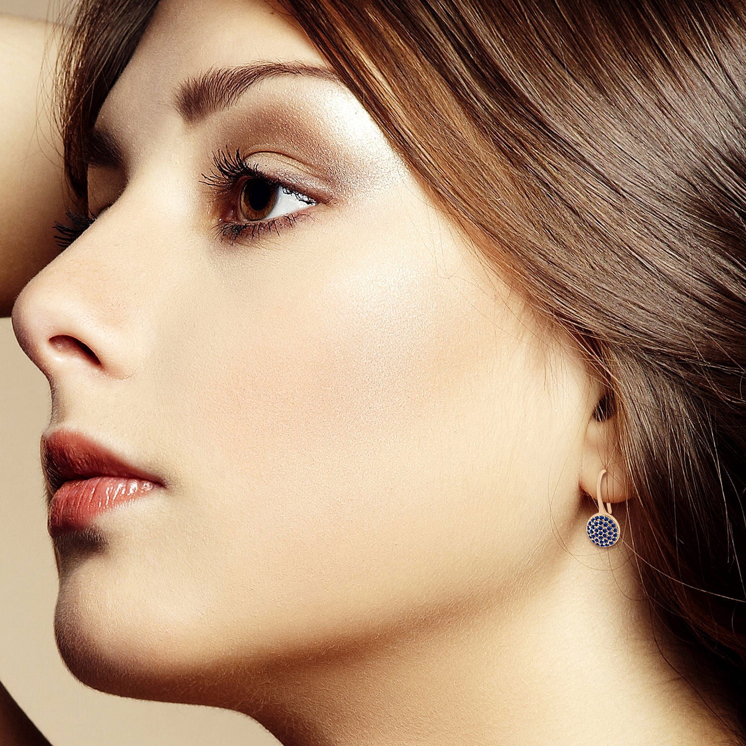 10K Rose Gold Pave Blue Sapphire Gemstone Ear Hook Earrings