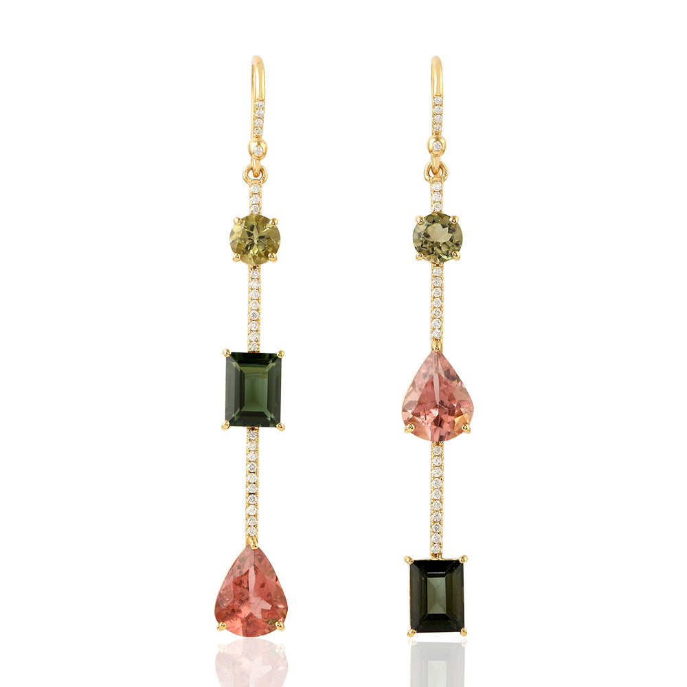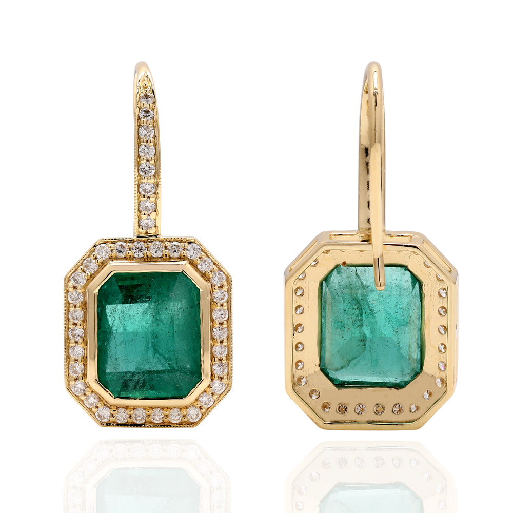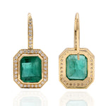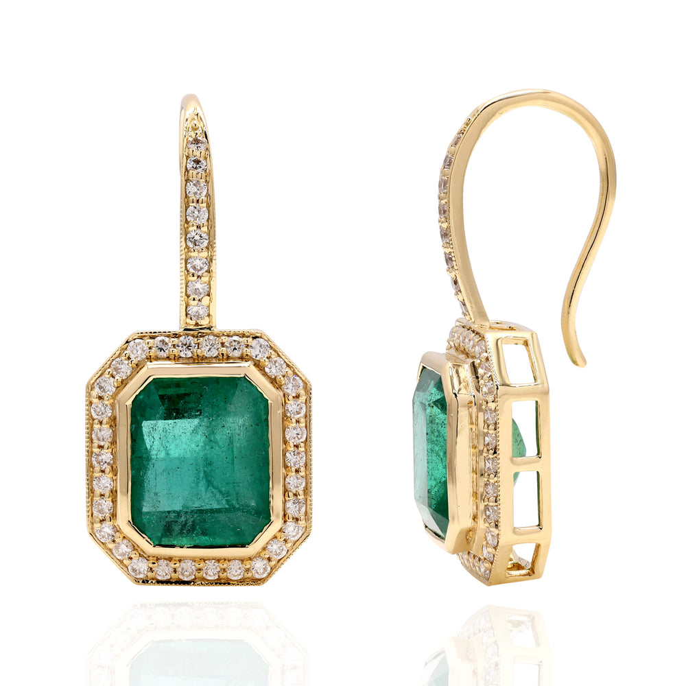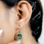 Emerald & Pave Diamond Designer Ear Hook Earrings in 18K Yellow Gold – Perfect Birthday Gift