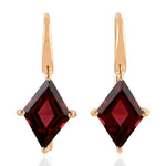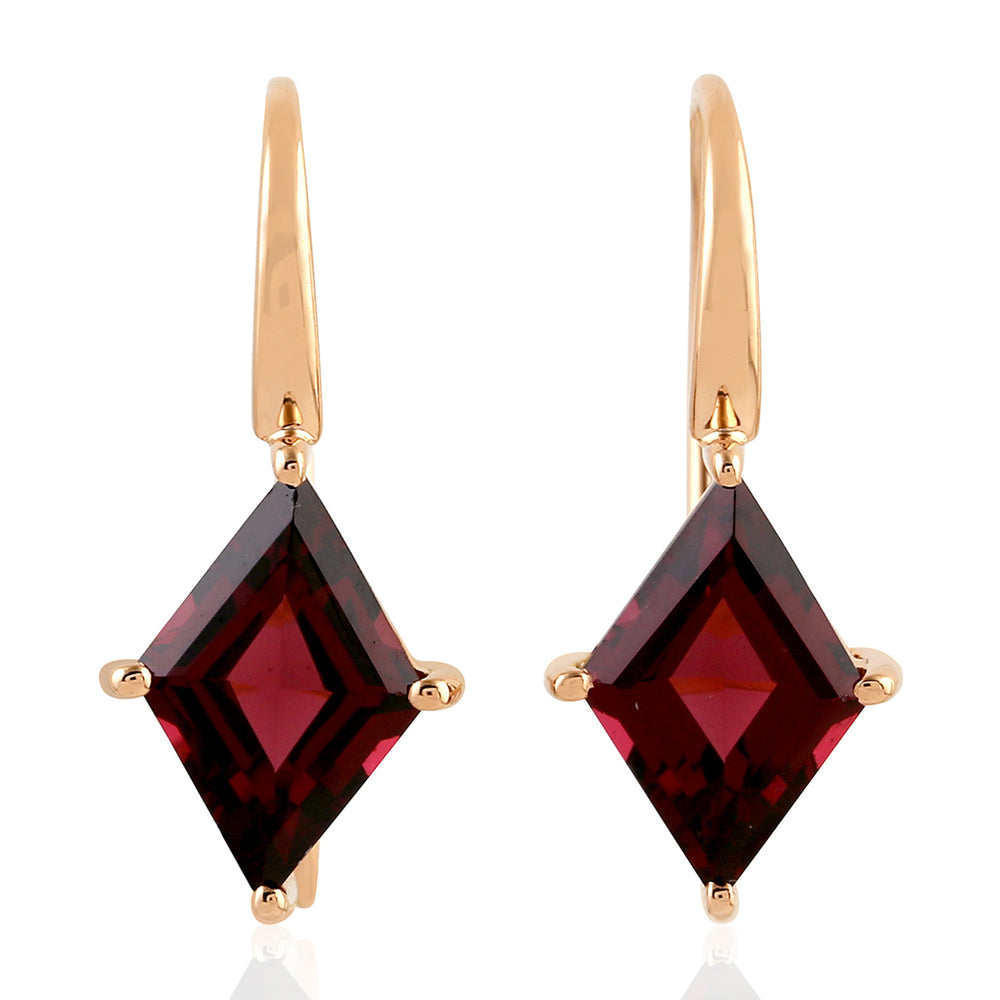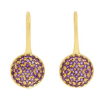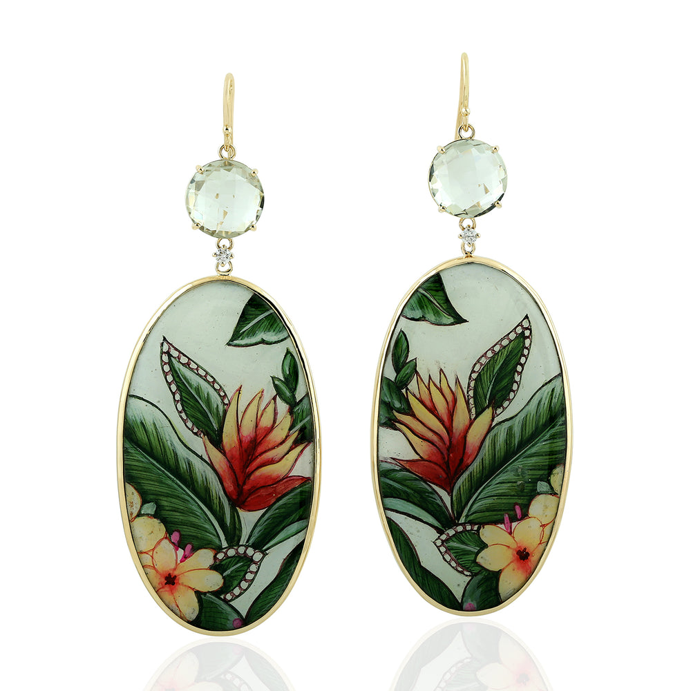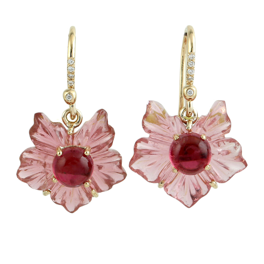 Carved Pink Tourmaline Pave Diamond Flower Ear Hook Earrings in Yellow Gold