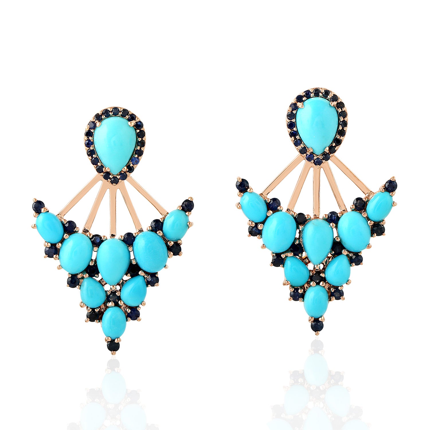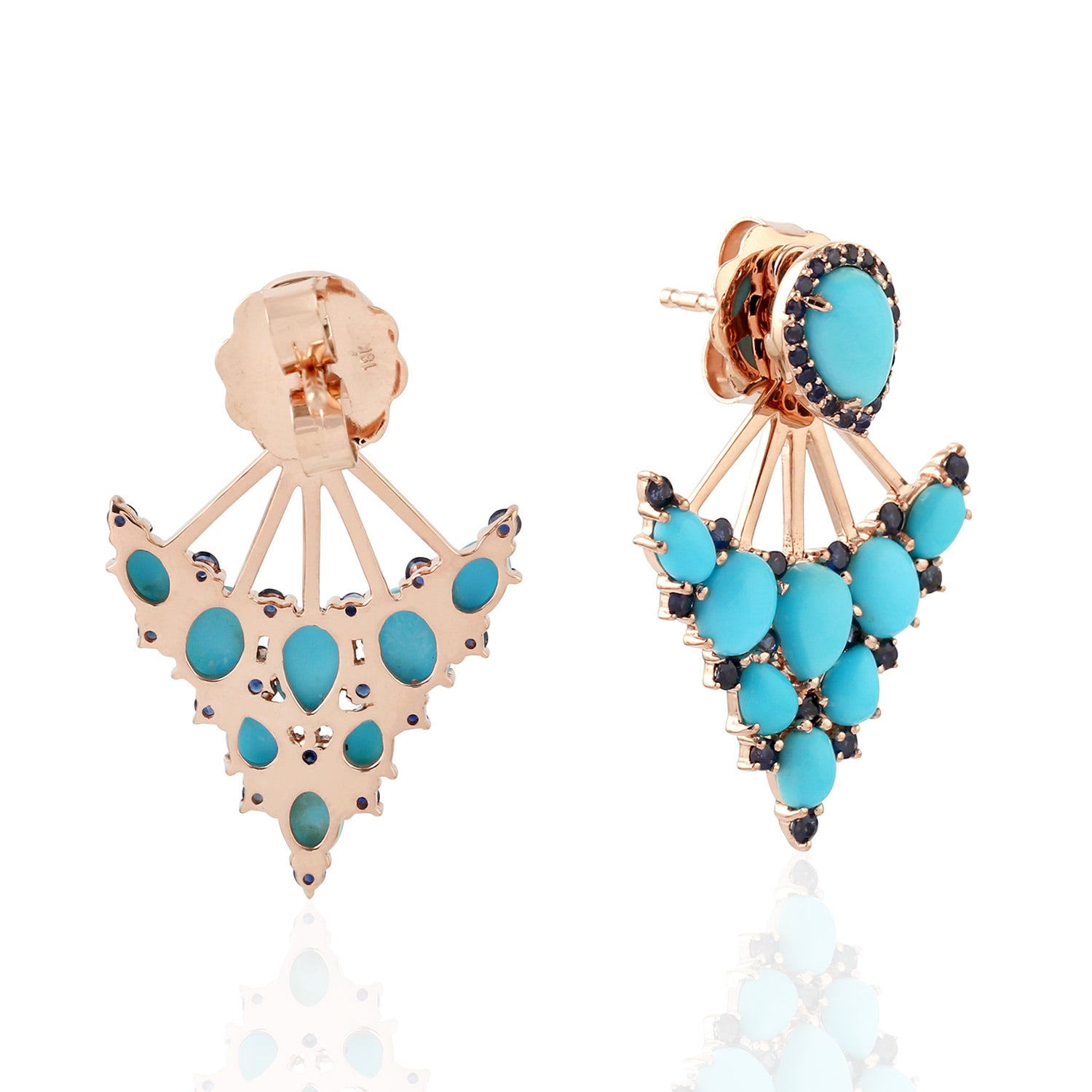 18K Rose Gold Ear Jacket with Turquoise & Pave Blue Sapphire Gemstones – Designer Statement for Women